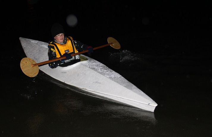 Handsmíðaður kajak settur á flot í Reykjavíkurtjörn 14. nóvember 2012 21:03 Kajakinn var settur á flot í Reykjavíkurtjörn. MYND/SVEINN ALFREÐSSON Forláta kajak, handsmíðaður frá grunni, var sjósettur í Reykjavíkurtjörn fyrr í kvöld við mikinn fögnuð vegfarenda. Það er fjölgreinastarf Lindakirkju sem stendur að verkefninu en það er félagsskapur ungra pilta sem njóta þess að vinna að sérstökum og óhefðbundnum verkefnum. Sveinn Alfreðsson er annar skipuleggjenda verkefnisins. Hann segir meginmarkmið verkefnisins vera að skipuleggja spennandi verkefni fyrir unga drengi. „Við vildum mæta þessum krökkum," sagði Sveinn í samtali við Vísi. „Þessir piltar eru alveg frábærir, afar handlagnir og margt til listanna lagt."Piltarnir í fjölgreinastarfi Lindakirkju.MYND/SVEINN ALFREÐSSONFyrir nokkru var ákveðið að leggjast í smíði á kajak. Reyndir handverksmenn veittu piltunum dyggan stuðning enda þurfti sérfræðing til að sýna þeim hvernig réttast væri að vinna með trefjaplastið. Stóra stundin rann síðan upp í kvöld. Liðsmenn fjölgreinastarfsins burðuðust þá með kajakinn í rigningunni að Reykjavíkurtjörn. Báturinn var settur á flot og piltarnir sigldu á tjörninni. Sveinn segir uppátækið hafa vakið mikla lukku meðal vegfarenda. „Strákarnir voru afar ánægðir með þetta," segir Sveinn. „Það er mikill hugur í þessum strákum. Síðan stóðu þeir sig mjög vel í róðrinum." Sjósetningin í dag markar þó ekki endalok fjölgreinastarfsins, því fer fjarri. „Við söfnum nú í ferðasjóð og stefnan er tekin á Danmörk. Þetta verður mikil ævintýraferð, ætlum að heimsækja Tívolíið og Lególand." Næsta verkefni á dagskrá er síðan að rafsjóða flugeldastanda fyrir áramótin. Þar á eftir verður Lindakirkja sjálf endursköpuð úr piparkökudeigi. Mest lesið Tugum sagt upp í þremur hópuppsögnum Innlent Önnur lægð nálgast landið Veður Fleiri óánægðir en ánægðir í fyrsta skipti Innlent Drengurinn kominn af gjörgæsludeild Innlent Íranska þjóðin vöruð við því að nota lestar landsins í dag Erlent Stakk og skar fórnarlambið á háls Innlent Eldri borgarar verið í lífshættu vegna ábyrgðarleysis framkvæmdaaðila Innlent Konráð segir námslánin vera gjöf en Helga Vala gjald Innlent Ásgrímur Halldórsson slapp með skrekkinn frá ofsanum í Dave Innlent Leikskólabarn lést eftir að það var kramið í koju Erlent Fleiri fréttir Konráð segir námslánin vera gjöf en Helga Vala gjald Ásgrímur Halldórsson slapp með skrekkinn frá ofsanum í Dave Drengurinn kominn af gjörgæsludeild Ekki hlutverk grunnskóla að kenna börnum sjálfsvörn Rafmagnsleysið og sjálfsvarnarkennsla Stakk og skar fórnarlambið á háls Auglýstu eftir framboðum og skelltu í lás yfir páska Fleiri óánægðir en ánægðir í fyrsta skipti Keflavíkurflugvöllur á varaafli vegna eldingar Þau skipa lista Sósíalistaflokksins í Reykjavík Tugum sagt upp í þremur hópuppsögnum Eldri borgarar verið í lífshættu vegna ábyrgðarleysis framkvæmdaaðila Virkjuðu flugslysaáætlun á Akureyri Stærðar gámur valt af Fjósakletti og lenti á hvolfi Rotaðist eftir að hafa fokið á höfuðið Flugmönnum leyfist að gera mistök í flughermi „Þetta er algjör hetjudáð að fara þarna upp á“ Rúta valt á Kjalarnesi Fastir bílar, fall af hestbaki og þakkjölur við það að losna Tuttugu þúsund á hvern illa búinn hjólbarða Vanhæfi fyrirtækisins til að sinna skyldum sínum sé algert Bíll við bíl á Hellisheiði eftir að heyrúllur féllu á veginn Lilja mætt aftur á Alþingi Óveðrið hefur áhrif á flugáætlun Icelandair Vanalega óttist fólk að eitthvað hræðilegt sé að gerast Lýstu eftir manni á níræðisaldri „Skynsamlegt að spyrja þjóðina“ Snjóflóð hrifsaði með sér göngugarpa Fólk stillt að mestu á Akureyri „Stórslysalaust“ á Ísafirði í nótt Sjá meira