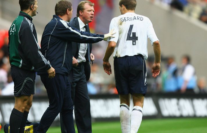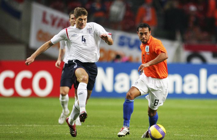 99 landsleikir Gerrard í myndum 14. nóvember 2012 16:30 Steven Gerrard nær stórum áfanga í kvöld þegar hann leikur sinn 100. landsleik fyrir England. Hann er aðeins sjötti leikmaðurinn sem nær þeim áfanga. Gerrard lék sinn fyrsta landsleik þann 31. maí árið 2000. Þá kom hann af bekknum í leik gegn Úkraínu og var svo valinn í hópinn fyrir EM. Þar kom hann aðeins við sögu í einum leik. Fyrsta landsliðsmarkið kom í frægum 5-1 sigri Englands á Þýskalandi í undankeppni HM í september árið 2001. Bæði að ofan og neðan má skoða fjölda mynda af landsleikjaferli Gerrard. HM 2014 í Brasilíu Mest lesið Besta sætið um sóknarleikinn: „Að mínu mati dugar þetta ekki til“ Handbolti Elvar vildi ekki stela fjölskyldubílnum Handbolti Hakkar í sig þá sem vildu reka Alfreð Gíslason Handbolti „Langar að biðja Stólana afsökunar á því sem ég lét út úr mér í síðustu umferð“ Körfubolti Arfleifð Cool Runnings lifir áfram á Ólympíuleikunum Sport Faxi ekki sár út í Íslendinga: „Ísland getur gert stóra hluti á EM“ Handbolti Uppgjörið: Keflavík - Ármann 93-102 | Ármenningar unnu í Keflavík Körfubolti „Mig kitlar svakalega í puttana“ Handbolti „Of margir sem reyndu að bjarga leiknum“ Körfubolti Leik lokið: ÍR - Stjarnan 109-118 | Stjörnumenn áfram á sigurbraut Körfubolti Fleiri fréttir Hákon og félagar léku manni fleiri í klukkutíma en töpuðu samt Sancho tryggði Aston Villa áfram í Evrópudeildinni Alisha Lehmann verður nýr liðsfélagi Hlínar Fimm daga fangelsi fyrir að klæðast Borat skýlu á Meistaradeildarleik Sigurður Bjartur á leið til Spánar? „Lagar lekann í smástund en þetta er ekki Liverpool-leiðin“ Freyr orðinn þreyttur á endalausu slúðri Stjarnan selur Adolf Daða til FH Sjáðu mörkin úr Meistaradeildinni: Aukaspyrna Szoboszlai, Lewandowski fyrir bæði lið og Kane klikkaði á þrennu Heimavinnan skilaði marki fyrir Szoboszlai Komst ekki í liðið hjá Val en skaut niður City: „Frá Lödubíl yfir í Lamborghini“ Þættir um Manchester United í anda „The Crown“ Newcastle og Chelsea unnu bæði í Meistaradeildinni í kvöld Lewandowski skoraði fyrir bæði félög í Prag Liverpool með flottan sigur í Frakklandi Þór/KA fær þrjá leikmenn frá Stólunum á fimm leikmanna degi Sjálfsmark endaði sigurgönguna og dramatík í Aserbaísjan Leikmenn City endurgreiða stuðningsmönnum Íslensku landsliðskonurnar spila á heimavelli Nottingham Forest Frakkar munu að svo stöddu ekki sniðganga HM vegna Grænlands Telur starf Guardiola í hættu: „Hélt ég myndi aldrei á minni lífsleið segja þetta“ Óttast að Grealish verði lengi frá Feginn Frank fékk sér tvö stór rauðvínsglös Sjáðu mörkin úr Meistaradeildinni: Tvenna Jesus, óvænt töp, veisla í Madríd og langþráður sigur Lærir inn á nýtt umhverfi: „Ég mun gera mörg mistök“ Xabi Alonso myndi segja nei við öllum núna nema Liverpool Bauð Paul Scholes heim til sín til að ræða málin Real Madrid skoraði sex mörk í Meistaradeildinni Gabriel Jesus stjarna Arsenal í enn einum Meistaradeildarsigrinum City fékk skell í Noregi Sjá meira