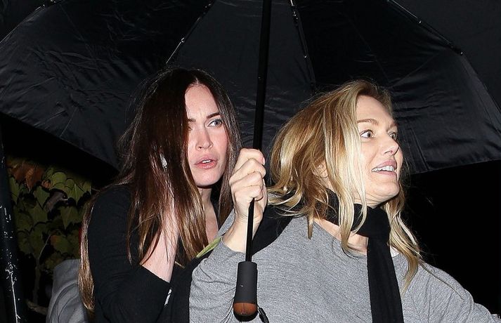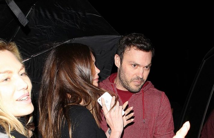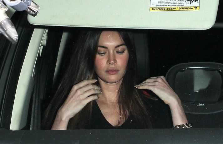 Leikkonan Megan Fox, 26 ára, og eiginmaður hennar, Brian Austin Green, sáust í fyrsta sinn eftir að þau eignuðust drenginn Noah 27. september síðastliðinn. Hjónin fengu sér að snæða á veitingahúsi í Los Angeles í fyrradag. Eins og sjá má kærðu þau sig ekki um að vera mynduð þegar þau yfirgáfu veitingastaðinn - skiljanlega!Megan Fox kærði sig ekki um að vera mynduð.Hjónin yfirgáfu veitingahúsið í flýti.