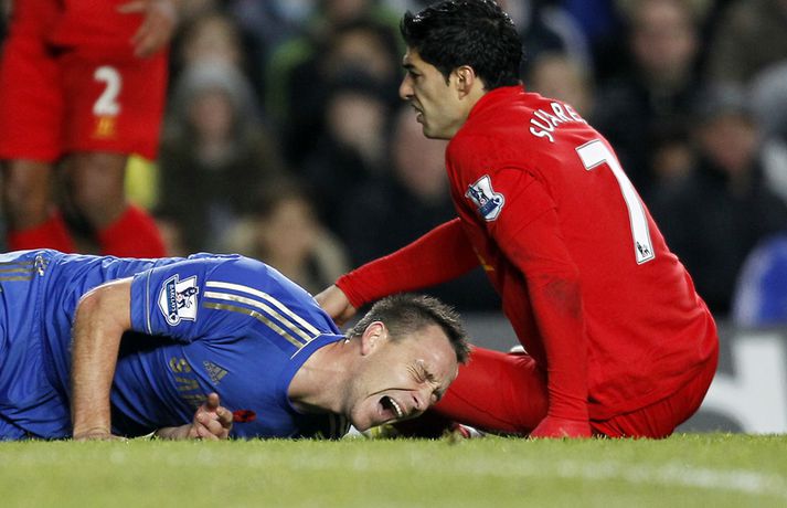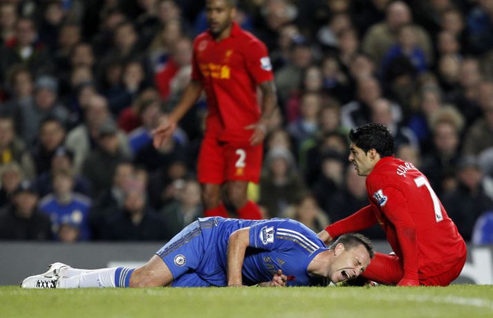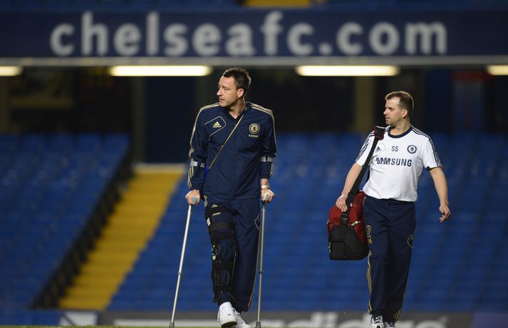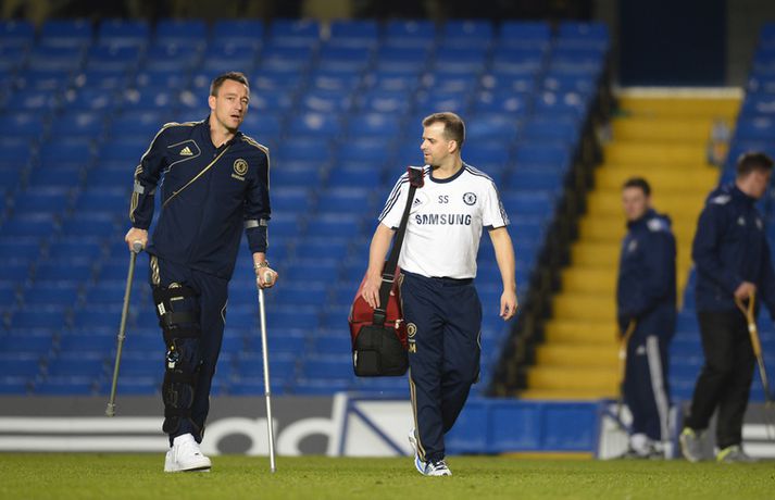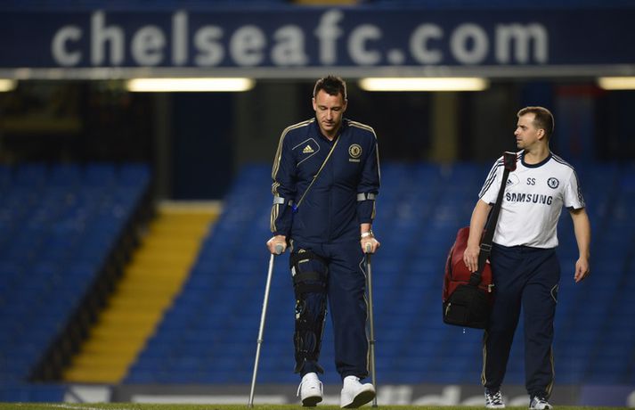 Terry slapp vel - engin liðbönd sködduð Óskar Ófeigur Jónsson skrifar 12. nóvember 2012 16:28 John Terry. Mynd/Nordic Photos/Getty John Terry, fyrirliði Chelsea, virðist hafa sloppið vel frá hnémeiðslunum sem hann varð fyrir í jafnteflinu á móti Liverpool í ensku úrvalsdeildinni í gær. Terry var borin af velli í fyrri hálfleik og einhverjir óttuðust um að tímabilið væri hættu hjá kappanum. Terry fór í myndatöku í dag og Daily Mail segir frá því að Chelsea hafi fengið góðar fyrstu fréttir út úr þeim þó að ekkert sé öruggt fyrir en að bólgan er búin að hjaðna eftir um það bil tvo faga. Terry yfirspennti hnéð en það lítur út fyrir að engin liðbönd séu sködduð. Þetta hefur verið seinna staðfest á twitter-síðu Chelsea. Terry hafði vissulega heppnina með sér og það virðist hafa verið honum til happs að hann stóð ekki í fæturna þegar hann lenti í samstuðinu við Luis Suarez í gær. Terry verður engu að síður frá í tvær til sex vikur en þessi 31 árs gamli miðvörður ætti að geta spilað aftur með Chelsea-liðinu áður en jólatörnin hefst. Enski boltinn Mest lesið Hafnaði 34 milljónum: „Vil ekki styðja kerfi sem býr til fíkn og eyðileggur líf“ Sport Littler sjóðheitur en sá fjórði besti varð fyrir áfalli Sport Liverpool-skotmarkið ekki á förum í janúar Enski boltinn Arnar Þór ráðinn til FIFA: „Himinlifandi að hafa fengið þetta starf“ Fótbolti Salah sakaður um dýfu: „Getum ekki keppt við Egypta og dómarana“ Fótbolti Syrgja átján ára fimleikakonu Sport Haukur náði hundrað og hundrað fyrir EM Handbolti Írar ætli að fylgja eftir tillögu Heimis Fótbolti Skoraði og fékk gult fyrir að benda Fótbolti Dagskráin í dag: Messan, meistarar Hauka, píla og NFL-veisla Sport Fleiri fréttir Liverpool-skotmarkið ekki á förum í janúar Aldrei spilað þarna en sagði strax já „Viss um að ég myndi skora einn daginn“ Watkins hélt ótrúlegri sigurgöngu Villa áfram Schade og Jiménez sendu Brentford og Fulham í efri hlutann Arsenal aftur á toppinn Fyrsta mark Wirtz í þriðja sigrinum í röð Cherki aðalmaðurinn í sigri City Úlfarnir heiðruðu minningu Jota Andri Lucas frá í mánuð Sjáðu dönsku þrumuna sem færði United-mönnum öll þrjú stigin Segir að Arsenal stefni á sögulega fernu á þessu tímabili Amorim endaði viðtalið á gamansömum nótum „Við eigum heima í Evrópu“ Daninn skaut Man. United upp fyrir Liverpool Amorim segir strákinn í frystinum vera framtíðin hjá Man. United Martinez með fyrirliðabandið og báðir Fletcher-bræðurnir á bekknum Havertz gæti snúið aftur á næstu dögum Alfons og Willum sáu tvö rauð spjöld fara á loft Synir Diogo Jota leiða leikmenn út á Anfield Cunha vill skemmta og Howe treystir leikmönnum United horfir til Þýskalands eftir höfnun Semenyo Haaland stóðst vigtun eftir jólin Hápunktarnir hingað til í enska boltanum Goðsögn fallin frá Kærður af knattspyrnusambandinu Bestu jólamörkin: Drogba, Scholes eða Giroud? Van de Ven bað Isak afsökunar: „Vildi ekki meiða hann“ Hvers vegna heillast stórliðin svo af Semenyo? Stewart, Snoop og Modric í eina sæng Sjá meira