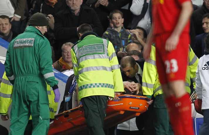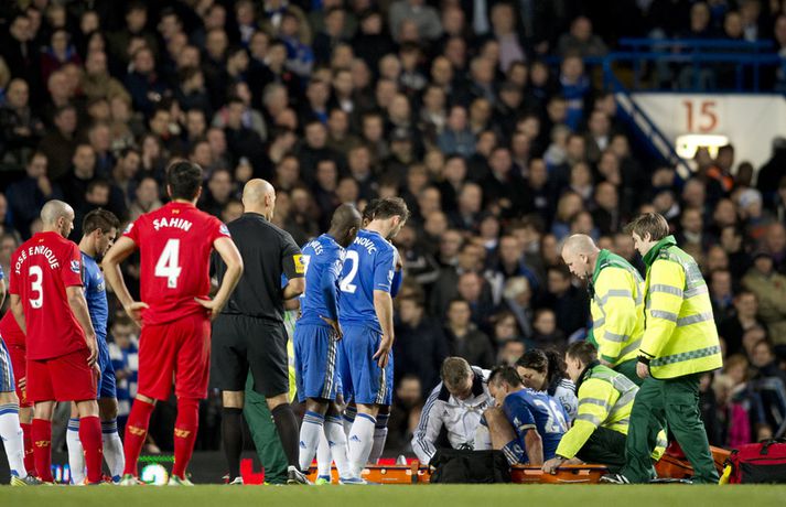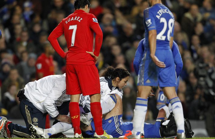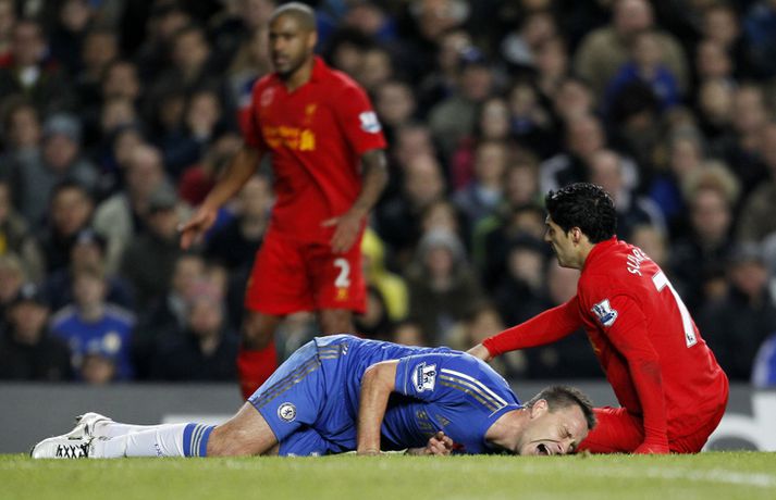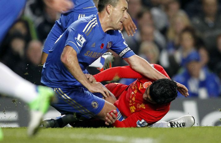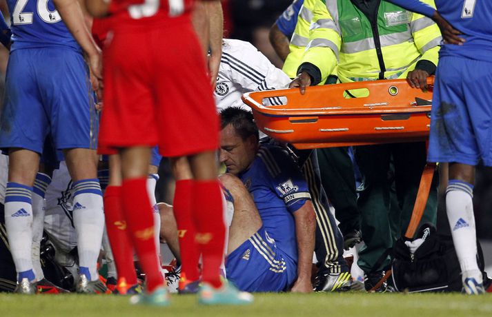 John Terry, fyrirliði Chelsea, virðist hafa sloppið vel frá hnémeiðslunum sem hann varð fyrir í jafnteflinu á móti Liverpool í ensku úrvalsdeildinni í gær. Terry var borin af velli í fyrri hálfleik og einhverjir óttuðust um að tímabilið væri hættu hjá kappanum. Terry fór í myndatöku í dag og Daily Mail segir frá því að Chelsea hafi fengið góðar fyrstu fréttir út úr þeim þó að ekkert sé öruggt fyrir en að bólgan er búin að hjaðna eftir um það bil tvo faga. Terry yfirspennti hnéð en það lítur út fyrir að engin liðbönd séu sködduð. Þetta hefur verið seinna staðfest á twitter-síðu Chelsea. Terry hafði vissulega heppnina með sér og það virðist hafa verið honum til happs að hann stóð ekki í fæturna þegar hann lenti í samstuðinu við Luis Suarez í gær. Terry verður engu að síður frá í tvær til sex vikur en þessi 31 árs gamli miðvörður ætti að geta spilað aftur með Chelsea-liðinu áður en jólatörnin hefst.