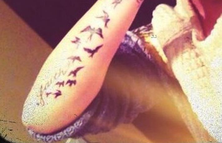 Fékk sér fuglatattú 27. nóvember 2012 15:00 MYNDIR / COVER MEDIA X Factor-dómarinn og lærimeistarinn Demi Lovato er ansi hreint hress og skemmtileg. Hún ákvað að fá sér nýtt húðflúr og fékk stjörnuhúðflúrmeistarann Kat Von D til að sjá um það. Demi frumsýndi listaverkið á Twitter-síðu sinni og var í skýjunum með afraksturinn. "Kærar þakkir fyrir nýja tattúið mitt Kat Von D! Mér finnst það fallegt og ég elska það!!" skrifaði Demi.Demi er ung en hefur afrekað mikið.Húðflúrið er afar fagurt en það er staðsett á handlegg Demi og sýnir tólf fugla fljúga upp handlegginn. Þú gætir unnið - vertu með okkur á Facebook. Mest lesið Ásgeir Kolbeins furðu lostinn yfir steini í jólapakkanum Lífið Gítarleikari The Cure er látinn Lífið Skilaði týndum heyrnartólum alla leið til Hamborgar Lífið „Fyrri kona mannsins míns er með Parkinson, ekki ég“ Áskorun Sjáðu nýja stiklu úr stjörnuprýddri hasarmynd Balta Lífið Allt í einu orðin mamman sem missti barnið sitt Lífið Þessi smurðu mest á reikning Jommunnar Lífið Jólagjafir íslenskra vinnustaða Lífið Sat uppi með sex kíló af kæstri skötu Lífið Óléttan uppgötvaðist þremur dögum fyrir byrjun skólans Menning Fleiri fréttir Gítarleikari The Cure er látinn Skilaði týndum heyrnartólum alla leið til Hamborgar Sjáðu nýja stiklu úr stjörnuprýddri hasarmynd Balta Ásgeir Kolbeins furðu lostinn yfir steini í jólapakkanum Viðtöl ársins 2025: Missir, afsögn ráðherra, umsáturseinelti og læknir sem þóttist vera með krabbamein Sat uppi með sex kíló af kæstri skötu Kristmundur Axel tók við af Bubba Seinfeld og Friends-leikari látinn Jólagjafir íslenskra vinnustaða Deildar meiningar um lyktina: „Þetta er byrjendaskata“ Fréttamenn gæða sér á skötu í gegnum árin Laufey á landinu Þar sem vinsælustu lög landsins verða til Þessi smurðu mest á reikning Jommunnar Einhverfir kaþólikkar um allan heim heita Þorlákur Cooper bað móðurina um hönd Hadid „Mér finnst gaman að láta sjokkera mig“ Brúðkaup ársins 2025 Heitt í hamsi hjá gestum á „helvíti á jörðu“ í Breiðholti Chris Rea hefur ekið heim um jólin í síðasta skipti Saga jarðaði alla við borðið Vísa ásökunum Skinner um kosningasvindl á bug Kimmel ávarpar bresku þjóðina: Frábært ár fyrir fasisma „Ég hugsa til þín á hverjum einasta degi“ Stjörnulífið: Óskar tíkunum gleðilegra jóla Veikindi eyðilögðu líka stóru stund Manúelu Hefur misst vini og kunningja vegna skoðana sinna Leitin á Svínafellsjökli sem hefur enn ekki skilað árangri Krakkatía vikunnar: Ísskápastríð, Eivör og Grafarvogur „Við byrjuðum að hlusta á jólalög í júlí“ Sjá meira