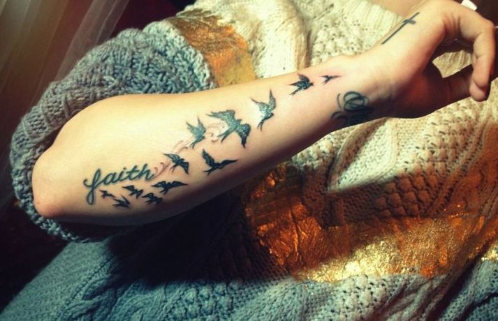 X Factor-dómarinn og lærimeistarinn Demi Lovato er ansi hreint hress og skemmtileg. Hún ákvað að fá sér nýtt húðflúr og fékk stjörnuhúðflúrmeistarann Kat Von D til að sjá um það. Demi frumsýndi listaverkið á Twitter-síðu sinni og var í skýjunum með afraksturinn. "Kærar þakkir fyrir nýja tattúið mitt Kat Von D! Mér finnst það fallegt og ég elska það!!" skrifaði Demi.Demi er ung en hefur afrekað mikið.Húðflúrið er afar fagurt en það er staðsett á handlegg Demi og sýnir tólf fugla fljúga upp handlegginn. Þú gætir unnið - vertu með okkur á Facebook.