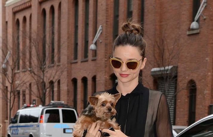 Ofurfyrirsætan Miranda Kerr spókaði sig um í New York-borg um helgina með kjölturakkann sinn Frankie. Frankie er hinn fullkomni fylgihlutur en Miranda er ávallt með puttann á tískupúlsinum. Fyrirsætan hefur sést mikið á götum New York upp á síðkastið og er ávallt óaðfinnanlega klædd – þó kalt sé. "Svo kalt í NYC í kvöld," skrifaði hún meðal annars á Twitter-síðu sína.Sæt saman.Þú gætir unnið - vertu með okkur á Facebook.