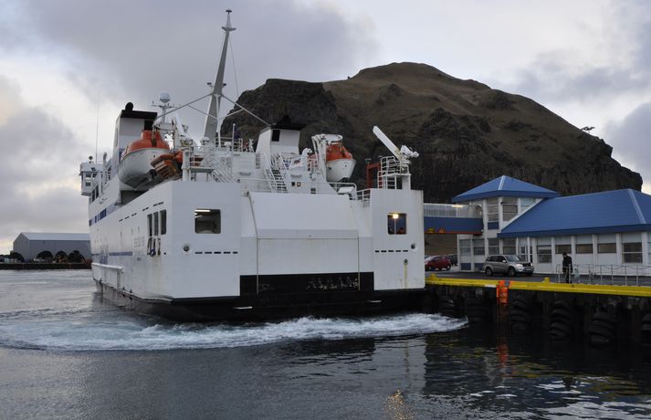 Herjólfur sigldi aðeins á annarri skrúfunni til Vestmannaeyja í dag eftir að hafa rekist utan í varnargrað við Landeyjahöfn í morgun, samkvæmt upplýsingum fréttastofu. Þegar skipið kom til hafnar í Vestmannaeyjum eftir hádegi í dag fór kafari og skoðaði hugsanlegar skemmdir á skrúfunni. Ekki liggur fyrir á þessari stundu hvort að þær hafi verið einhverjar. Gunnlaugur Grettisson, rekstrarstjóri Herjólfs í Vestmannaeyjum, vildi ekki tjá sig um málið þegar fréttastofa náði af honum tali í dag en sagði þó að málið myndi skýrast síðdegis.Vísir/Óskar