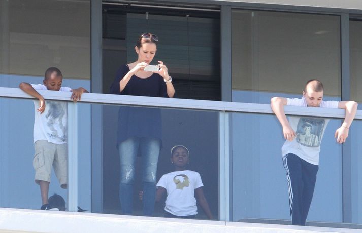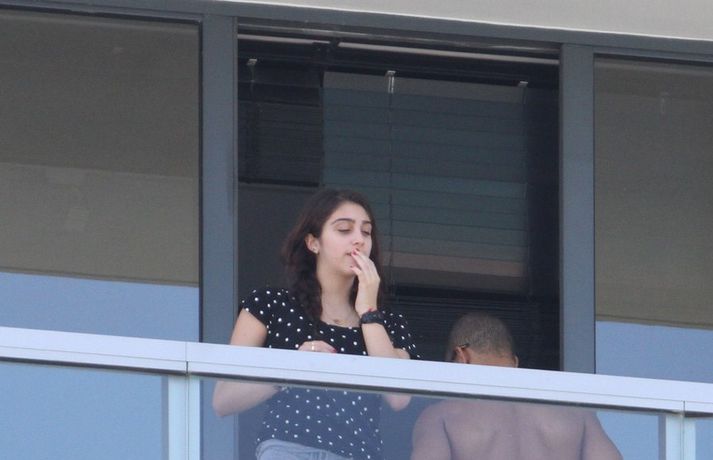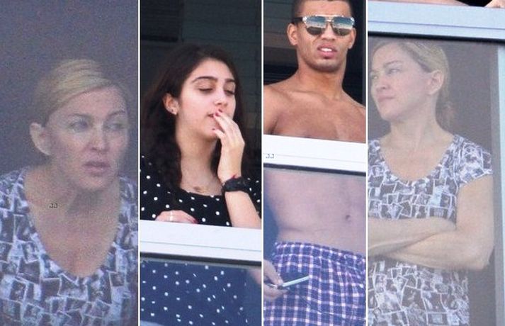 Madonna og kærastinn hennar Brahim Zaibat voru mynduð ásamt börnum Madonnu, Lourdes Leon, Rocco Ritchie, David Banda, og Mercy James á hótelsvölum í Miami á miðvikudaginn var. Fjölskyldan var í góðum fíling eins og sjá má á myndunum.
