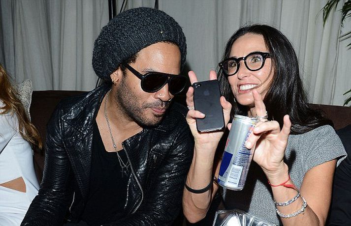 Leikkonan Demi Moore, 50 ára, var mynduð á skemmtistaðnum Chanel Beachside BBQ í Miami með Lenny Kravitz í gærkvöldi. Þar var einnig unnusta George Clooney, Stacy Keibler. Demi dansaði á milli þess sem hún flippaði og þambaði orkudrykki eins og sjá má á myndunum. Nú furðar pressan vestan hafs sig á því hvernig Demi sem á þrjú börn hagar sér eftir að hún skildi við leikarann Ashton Kutcher. Hún er allavegana að skemmta sér - er það ekki hið besta mál?