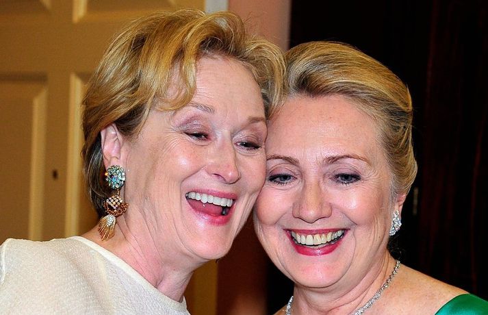Meryl Streep, 63 ára, og Hillary Rodham Clinton, 65 ára mynduðu sig saman á Iphone síma Meryl eins og tvær unglingsstúlkur í mjög svo virðulegri athöfn þar sem bandarískir einstaklingar voru heiðraðir fyrir störf sín. Þær voru uppábúnar og glæsilegar báðar tvær eins og sjá má á myndunum.Þú gætir unnið - vertu með okkur á Facebook.Hillary og Bill.Mynda sig á símann.