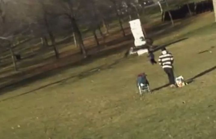 Ótrúlegt atvik í Kanada - Gullörn reyndi að fljúga á brott með ungabarn Ótrúlegt atvik í almenningsgarði í Montreal í Kanada náðist á á myndband á dögunum þegar gullörn steypti sér niður og reyndi að fljúga á brott við ungabarn. Örninn læsti klónum í baki barnsins og flaug með það í nokkrar sekúndur þar til hann missti takið þegar faðir barnsins nálgaðist. Barninu var að vonum nokkuð brugðið en það sakaði ekki. 19. desember 2012 08:54