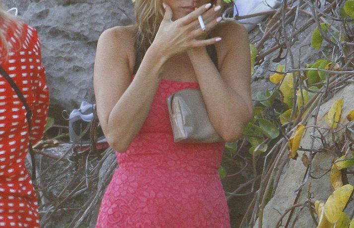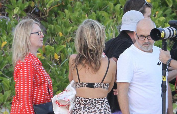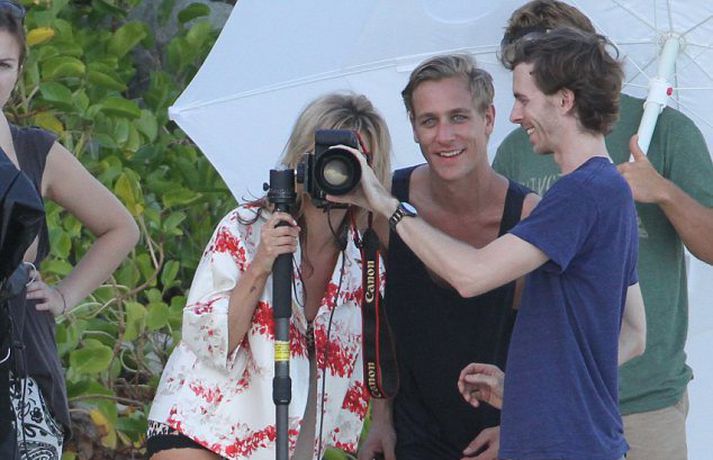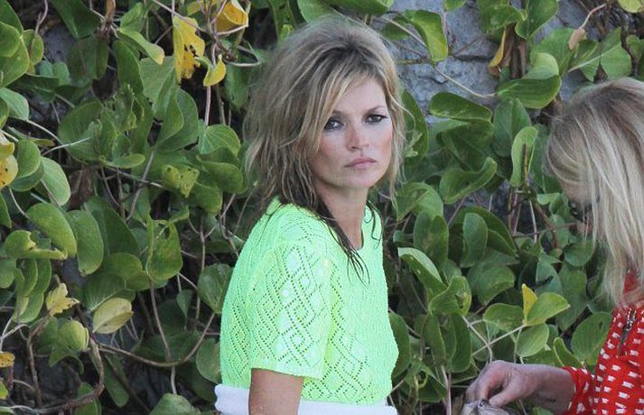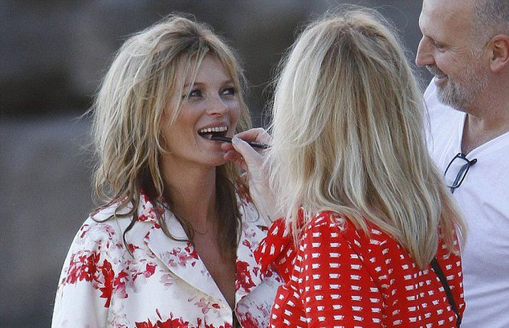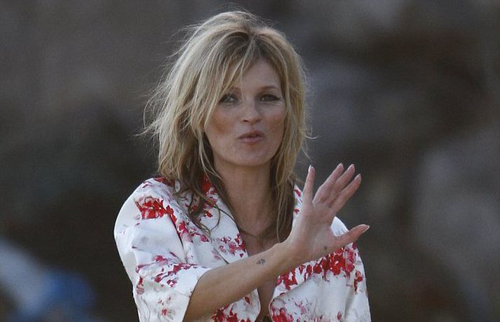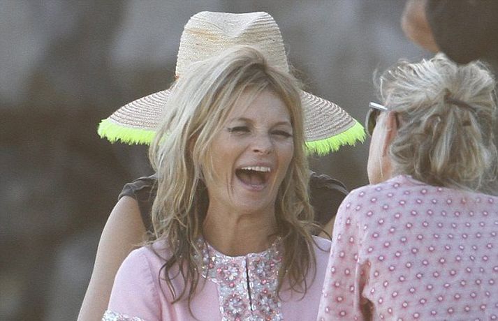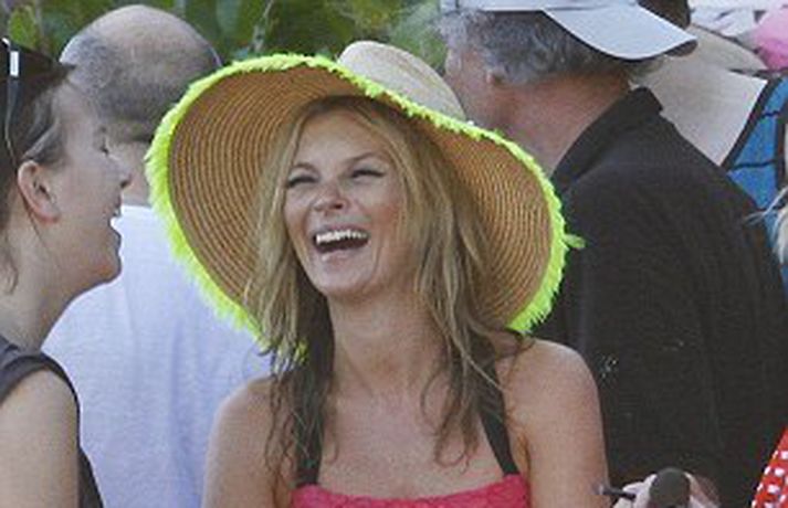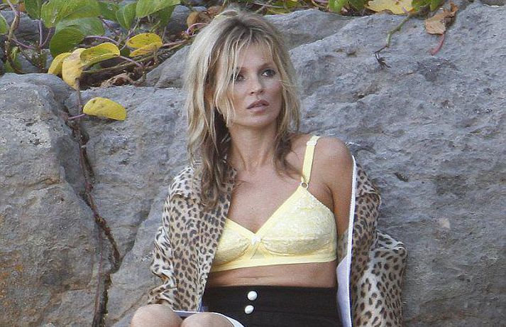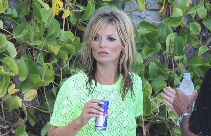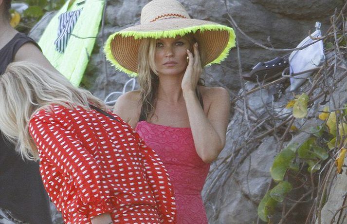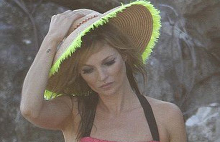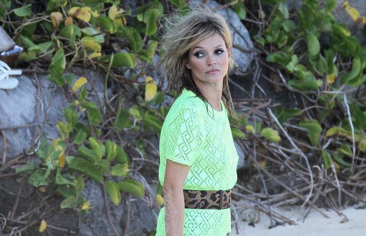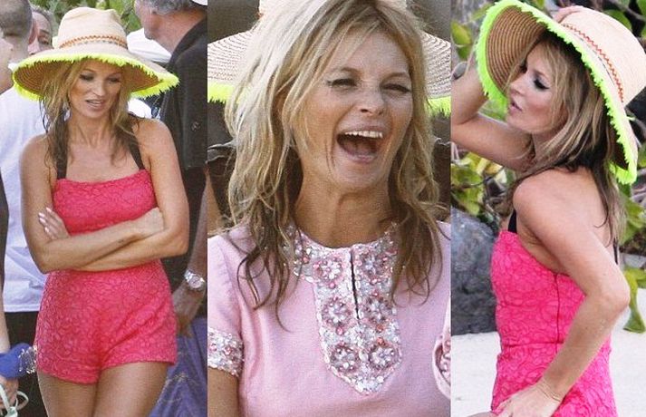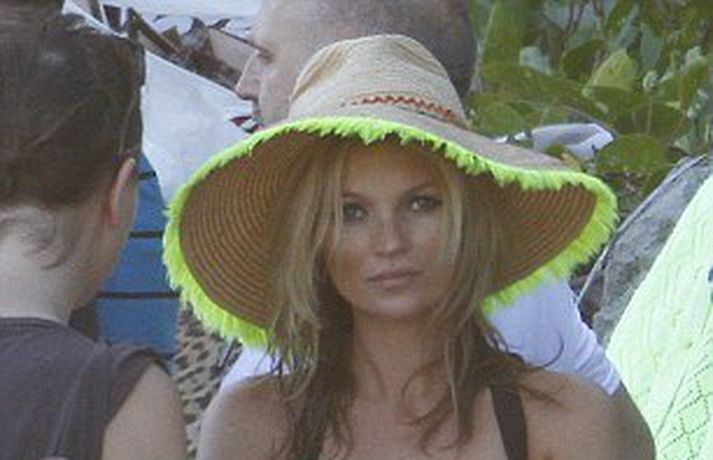 Breska fyrirsætan Kate Moss, 38 ára, er stödd í karabíska hafinu þessa dagana. þar sem hún situr fyrir á milli þess sem hún skemmtir sér stórvel eins og sjá má á meðfylgjandi myndum. Forréttindi að skemmta sér í vinnunni.Í símanum.