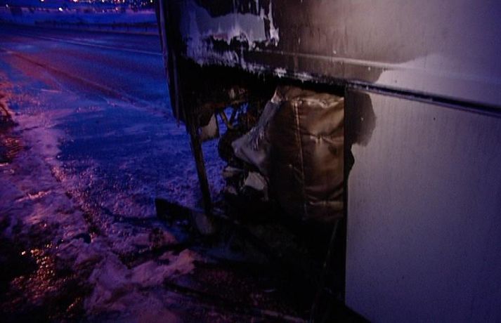 Eldur kom upp í flugrútunni á Reykjanesbraut 30. desember 2012 09:55 MYND/FRÉTTASTOFA Eldur kom upp í flugrútunni á Reykjanesbraut rétt fyrir klukkan níu í morgun. Sextíu farþegar voru í bílnum en fólkið var á leið til Keflavíkur í flug. Þegar slökkvilið kom á vettvang logaði talsverður eldur aftast í bílnum, þar sem vélin er staðsett og teygðu logarnir sig upp eftir afturgaflinum að sögn vaktstjóra hjá Slökkviliði höfuðborgarsvæðisins. Farþegarnir höfðu hinsvegar allir komist út heilir á húfi og amaði ekkert að þeim. Rekstraraðili rútunnar sendi strax annan bíl á vettvang og hélt hópurinn för sinni áfram upp á Keflavíkurflugvöll. Slökkviliðið lauk slökkvistarfi sínu á skömmum tíma en atburðurinn átti sér stað til móts við Haukaheimilið í Hafnarfirði. Mest lesið Hitinn fór í 19,8 stig og desembermetið slegið Veður Þau kvöddu á árinu 2025 Erlent Klæðning fauk af Stjórnsýsluhúsinu og skemmdi bíla Innlent Einn fluttur á sjúkrahús eftir bílslys Innlent Arion banki varar við svikaherferð Innlent Fátækari eftir að hafa svindlað á ferðakonum Innlent Kynnti drög að nýrri friðaráætlun Erlent Hvar er opið á aðfangadag? Innlent Skiluðu hagnaði á kosningaári Innlent Fimm fórust í þyrluslysi á Kilimanjaro Erlent Fleiri fréttir Klæðning fauk af Stjórnsýsluhúsinu og skemmdi bíla Gleðileg jól, kæru lesendur Einn fluttur á sjúkrahús eftir bílslys Skiluðu hagnaði á kosningaári Hátíðarveisla á kaffistofu Samhjálpar: „Það er ró og friður yfir fólki“ Björgunarsveitin kölluð út í fokverkefni Grjóthrun undir Eyjafjöllum Fátækari eftir að hafa svindlað á ferðakonum Arion banki varar við svikaherferð Innanlandsflugi aflýst Foreldrar skipverjans fá áheyrn í Hæstarétti Hvar er opið á aðfangadag? Innflytjendamálin almenningi efst í huga Bæta við allt að 200 íbúðum og mathöll í Spöngina Maður í umferðarslysi reyndist fíkniefnasali Minni rekstrarkostnaður fyrir eigendur bensínháka Hafnar „jólakveðju“ ríkisins Hefði þurft hjólbörur undir öll verðlaunin sín Ýmis ráð til taugatrekktra á Þorláksmessu Ekkert því til fyrirstöðu að Ásthildur Lóa verði aftur ráðherra Óvissa um ráðherraskipan og skata fyrir byrjendur Maðurinn fundinn Sigríður Halldórsdóttir nýr ritstjóri Kastljóss Íslendingur í gæsluvarðhaldi í Kólumbíu vegna gruns um kynferðisbrot Forsætisráðuneytið eyddi meiru í almannatengla í fyrra en í ár Inkalla snuð vegna of mikils magns BPA-plastefna Svanhildur Sif heiðruð Falskar netverslanir: Auglýsir rýmingarsölu nokkrum dögum eftir opnun Meðallaun upplýsingafulltrúa hækkuðu hlutfallslega mest Skötuilmurinn leggst yfir landið og Samkeppniseftirlitið ætlar að fylgjast vel með bensínverðinu Sjá meira