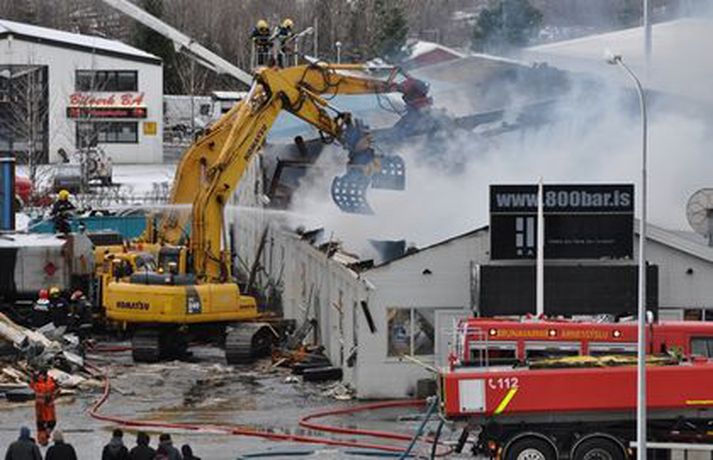 Slökkviliðsstjóri Selfoss: "Við höfðum gríðarlegar áhyggjur" 14. mars 2012 21:10 Grunur leikur á að eldurinn sem kom upp í húsnæði SET á Selfossi í dag hafi verið af völdum rafmagns. Slökkviliðsstjóri á Selfossi segir að gríðarlega hætta hafi myndast þegar eldurinn kom upp. „SET er ein af okkar stærri áhættum," sagði Kristján Einarsson, Slökkviliðsstjóri. „Það er afar mikill eldsmatur á svæðinu - plast og annað - við þurftum því að vinna samkvæmt ákveðinni aðgerðaráætlun þegar eldurinn kom upp. Þegar eldur kemur upp í SET, þá höfum við verulegar áhyggjur." Allur mannafli slökkviliðsins á Selfossi var kallaður út þegar eldurinn kom upp. Kristján sagði að áhættan sem myndaðist hafi kallaði á meira mannafl og var því haft samband við útstöðvar Slökkviliðsins í Árnessýslu. Að auki voru tíu menn úr Slökkviliði höfuðborgarsvæðisins kallaðir til. „Ég vildi hafa allan þann mannafla sem ég gat fengið," sagði Kristján. „Þetta er tugmilljóna tjón," sagði Kristján. „En þetta hefði getað orðið milljarða tjón hefðum við ekki náð að halda eldinum í skefjum. Við voru í raun skíthræddir um að eldurinn myndi dreifa úr sér. Sem betur fer tókst okkur að færa eldsmatinn sem var á milli húsanna." Búið er að hreinsa öll innviði út úr húsnæði 800 bars. Skemmtistaðurinn brann til kalda kola þegar eldtungur frá húsnæði SET læstu sér í þaki hans. Á morgun munu rannsóknarmenn mæta á staðinn og hefja formlega rannsókna á eldsupptökum. Lögreglan á Selfossi vaktar svæðið í kvöld og í nótt. Hægt er að sjá myndbrot frá eldsvoðanum á Selfossi hér fyrir ofan. Mest lesið Rabbíni drepinn í árásinni Erlent Tvinn-rafmagnsflugvél sem lækka á fargjöldin Erlent Tíu drepnir í skotárás á gyðingahátíð Erlent Mikið myrkur þegar ekið var á konu á rafhlaupahjóli Innlent Segir Kristrúnu verja „lögbrot“ samráðherra síns Innlent Skýrsla ráðherra svari ekki mikilvægum spurningum um brúun bilsins Innlent Skilur að starfsfólk hafi ekki viljað afgreiða manneskju með hakakross Innlent Tveir látnir eftir skotárás í háskóla Erlent Tveir fluttir á spítala vegna umferðarslyss í Biskupstungum Innlent Grunaðir um að skipuleggja hryðjuverk á jólamarkaði Erlent Fleiri fréttir Íslendingur í Brown-háskóla: Oftast í tímum í sömu stofu og árásin var gerð Ekkert því til fyrirstöðu að Ísland taki þátt í drónakaupum Ekkert ákveðið varðandi framboð: „Ég er í tveimur flokkum“ Hálka þegar bíll valt í Biskupstungum Mikið myrkur þegar ekið var á konu á rafhlaupahjóli 270 íbúðir í byggingu í Þorlákshöfn Ástandið á bráðamóttökunni sýni viðkæmni kerfisins Segir Kristrúnu verja „lögbrot“ samráðherra síns Hryðjuverkaárás í Ástralíu og ástand í heilbrigðiskerfinu Sanna segir frá nýju framboði Dyraverðir handteknir vegna líkamsárásar Skýrsla ráðherra svari ekki mikilvægum spurningum um brúun bilsins Aðstæður bágbornar á spítalanum til að mæta svo miklu álagi Tveir fluttir á spítala vegna umferðarslyss í Biskupstungum Bjarnveig Birta og Stein Olav sigurvegarar forprófkjörs „Ég fæddist inn í pólitískan líkama“ Eldur í íbúð við Snorrabraut Skilur að starfsfólk hafi ekki viljað afgreiða manneskju með hakakross Sjúklingar ekki lengur í bílageymslu bráðamóttökunnar Sameiningu Dalabyggðar og Húnaþings vestra hafnað Píratar vilja ganga til viðræðna um sameiginlegt framboð Mikilvægt að geyma stafræn gögn innan lögsögunnar Bæjarskrifstofur fluttar: „Þetta húsnæði er barn síns tíma“ Óttast að fólk sleppi að kaupa lyf vegna minni greiðsluþátttöku Munu reyna að fá nýju virkjunarleyfi hnekkt Vara fólk við póstum og skilaboðum frá Grundarheimilunum Vara við póstum frá Grund og „jafnréttisþreyta“ Stuðningsyfirlýsing Össurar eins og koss dauðans Fjárlög, skattar og skipti á dánarbúum á laugardagsþingi Þau fái heiðurslaun listamanna Sjá meira