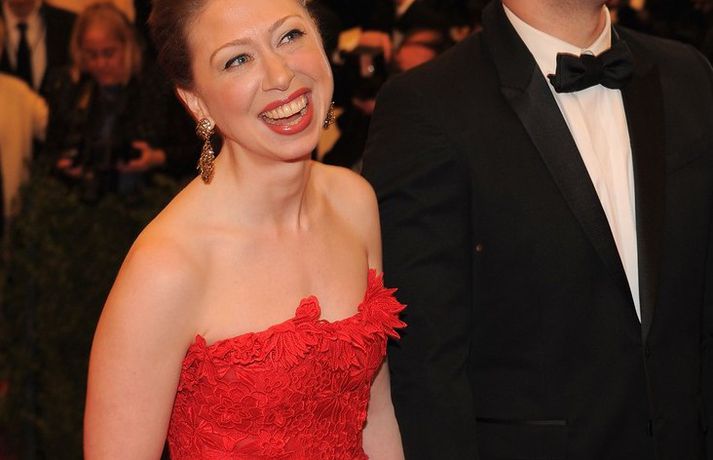 Dóttir Bill Clinton fyrrum forseta Bandaríkjanna, Chelsea Clinton, 32 ára, var klædd í eldrauðan síðkjól með hárið uppsett þegar hún mætti á rauða dregilinn ásamt eiginmanni sínum Marc Mezvinsky á galasamkomu í New York í gær. Eins og sjá má var Chelsea stórglæsileg. Þá má einnig sjá fleiri myndir af henni í myndasafni.