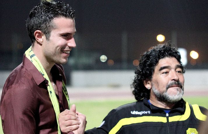 Langþráður draumur rættist hjá Hollendingnum Robin Van Persie, leikmanni Arsenal, í gær er hann hitti besta knattspyrnumann allra tíma, Diego Armando Maradona. Van Persie er í fríi í Dúbaí og kom Maradona á óvart er hann birtist óvænt á æfingu hjá Al Wasl sem Maradona þjálfar. "Ég hef alltaf dáð Maradona enda einn besti knattspyrnumaður allra tíma. Það hefði ekkert verið varið í þessa ferð til Dúbaí ef ég hefði ekki náð að hitta kallinn," sagði Van Persie. Maradona var ánægður með heimsóknina. Spjallaði við Van Persie og svo spörkuðu þeir bolta á milli áður en stillt var upp í fjölskyldumyndatöku með argentínska goðinu. "Van Persie er stjörnuleikmaður og einnig með sterkan karakter sem ég ber virðingu fyrir. Hann er mikil fyrirmynd annarra leikmanna," sagði Maradona auðmjúkur.