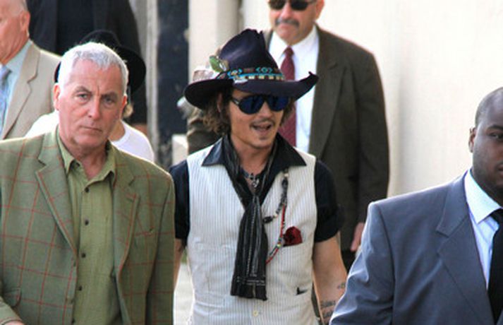 Leikarinn Johnny Depp gekk hröðum skrefum ásamt fylgdarliði með kúrekahatt og sólgleraugu eins og sjá má á myndunum þegar hann yfirgaf sjónvarpsstöð í Hollywood. Johnny var að kynna nýja kvikmynd þar sem hann fer með aðalhlutverkið sem ber heitið Dark Shadows. Eftir umrætt sjónvarpsviðtal skundaði leikarinn beint út á flugvöll.