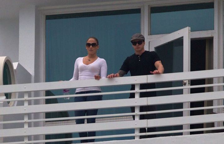 Jennifer Lopez, 42 ára, og unnusti hennar, Casper Smart, 24 ára, voru mynduð fyrir utan hótelið þar sem þau dvöldu í New York í síðustu viku. Þá má einnig sjá parið á hótelsvölum í Miami njóta útsýnisins í gær, sunnudag. Ef marka má myndirnar er Jennifer ástfangin af unga drengnum sem hvíslaði að henni á milli þess sem hún sat fyrir í baðfötum. Þá má einnig sjá Jennifer í sjónvarpsviðtali.