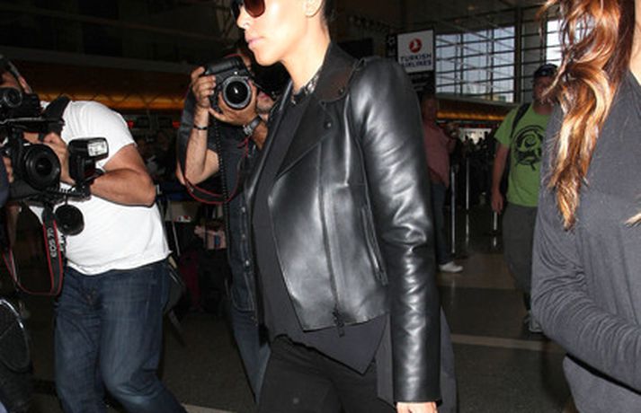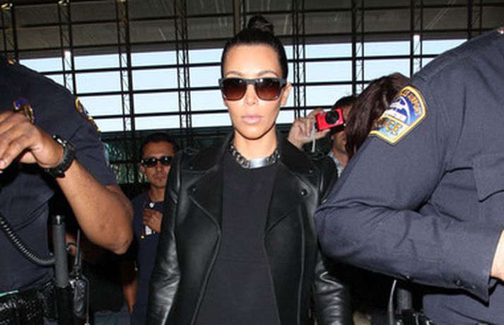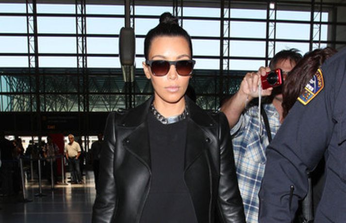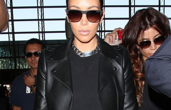 Sjónvarpsstjarnan Kim Kardashian mætti alvörugefin og svöl á að líta á LAX flugvöllinn í Los Angeles. Eins og sjá má á myndunum var Kim með hárið tekið aftur í snúð, með sólgleraugu á nefinu og í svörtum í leðurjakka. Skoða má stúlkuna betur í myndasafni.