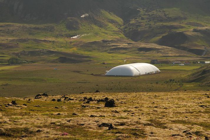 Hamarshöllin risin 8. júlí 2012 10:13 Hamarshöllin mynd/Jóhann K. Jóhannsson Nýja Hamarshöllin í Hveragerði er risin. Er þetta fyrsta loftborna íþróttahúsið á Íslandi. Til stóð að blása íþróttahúsið upp í gærmorgun en því þurfti að fresta. Það var síðan gert seint í gærkvöld en margir íbúar fylgdust spenntir með. Gervigrasvöllur eru í Hamarshöllinni sem og fjölnota íþróttagólf. Höllin er 5.000 fermetrar að stærð og er upphituð. Mest lesið Ríkissjóður greiðir fyrir flutning hinna látnu til Íslands Innlent „Krítískur massi af snarbrjáluðu fólki nær yfirhöndinni“ Innlent Ekið á konu á Langholtsvegi Innlent Trump nefnir nýja kynslóð orrustuskipa í höfuðið á sjálfum sér Erlent Undrandi á ráðningu ráðgjafa Innlent Hyggst kæra dyraverði Auto til lögreglu Innlent Fjölgun eldri kvenna í Kvennaathvarfi: „Þessar konur bíða ekki“ Innlent Skapari Call of Duty lést í bílslysi Erlent Sektaður um hundruð þúsunda fyrir að sparka í hund Innlent Ný könnun Maskínu: „Væri alveg ný staða í íslenskum stjórnmálum“ Innlent Fleiri fréttir Meðallaun upplýsingafulltrúa hækkuðu hlutfallslega mest Skötuilmurinn leggst yfir landið og Samkeppniseftirlitið ætlar að fylgjast vel með bensínverðinu Áfram auknar líkur á eldgosi Sektaður um hundruð þúsunda fyrir að sparka í hund Stýra fjármálum og mannauðsmálum Þjóðleikhússins Sló mann í höfuðið með glerflösku á ísfirskum skemmtistað Ekið á konu á Langholtsvegi Ríkissjóður greiðir fyrir flutning hinna látnu til Íslands Undrandi á ráðningu ráðgjafa „Krítískur massi af snarbrjáluðu fólki nær yfirhöndinni“ Fjölgun eldri kvenna í Kvennaathvarfi: „Þessar konur bíða ekki“ Ráðist á pilt á heimleið Stytting framhjá Blönduósi ekki á samgönguáætlun Vestmannaeyingar fá að eiga Vestmannaeyjar Hyggst kæra dyraverði Auto til lögreglu „Ótrúlega sorglegt að pabbi sé búinn að vera svona lengi í þessari stöðu“ Höfðu samband við dönsku herstjórnina á Grænlandi Ný könnun Maskínu: „Væri alveg ný staða í íslenskum stjórnmálum“ Glæný Maskínukönnun og jólaóveður Ársæll hringdi beint í utanríkisráðherra eftir fundinn Ósannað að fimmtán ára stúlka hafi stungið sextán ára pilt tvisvar Sameina Farice, Öryggisfjarskipti og hluta Neyðarlínunnar Gaf fingurinn á Miklubraut Birtir drög að lögum um lagareldi: Hyggst leggja niður Fiskeldissjóð Hundrað og fjörutíu milljarða bótakrafa á Samherja sé súrrealísk Skemmdir í kirkjugörðum vegna aksturs utan vegar Ólýsanlegur harmur fyrir fjölskylduna og söfnun hleypt af stokkunum „Ég hef aldrei upplifað annan eins harm“ Vill leiða lista Sjálfstæðismanna í Reykjanesbæ „Þetta hefur verið þungur tími“ Sjá meira