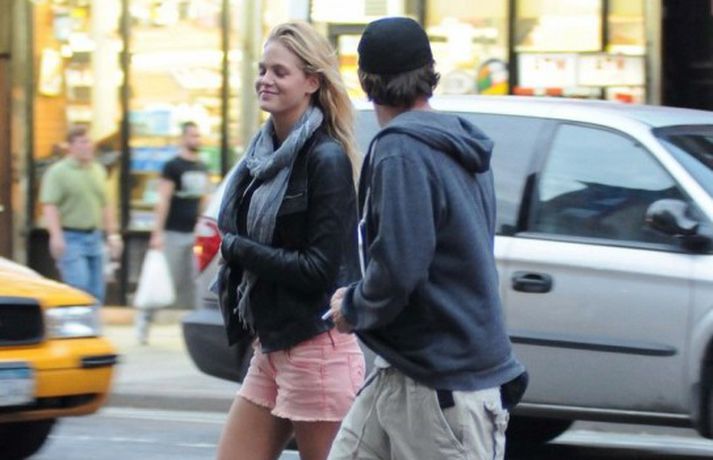 Leikarinn Leonardo DiCaprio, 37 ára, og kærastan hans Erin Heatherton, 23 ára, létu vel að hvort öðru yfir hádegisverði á ítölskum veitingastað í New York í gær. Eins og sjá má í myndasafni er parið ástfangið. Erin starfar sem undirfatamódel fyrir undirfataframleiðandann Victoria’s Secret.