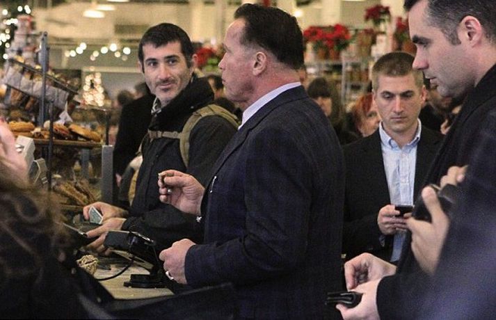 Stórstjarnan Arnold Schwarzenegger spókaði sig um í Hollywood á dögunum og frumsýndi ansi sérstaka greiðslu – stutt í hnakka og hliðum. Sem betur fer er Arnold ekki búinn að ráða hræðilegan stílista heldur er klippingin fyrir nýjustu mynd hans Ten. Það er að sjálfsögðu hasarmynd og ásamt Arnie leika Sam Worthington, Joe Manganiello og Malin Akerman í myndinni.Ber aldurinn vel.Arnold er líka vel tattúveraður í myndinni sem fullkomnar hasarmyndalúkkið.Reffilegur í nýju hasarmyndinni.Þú gætir unnið - vertu með okkur á Facebook.