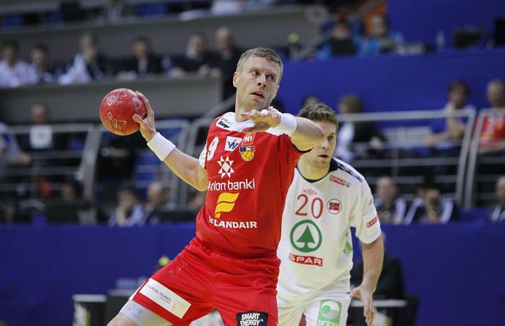 Guðjón Valur Sigurðsson segir að það sé ekki rétt sem spurðist út í gær að hann væri búinn að semja við þýska stórliðið Kiel sem Alfreð Gíslason þjálfar og Aron Pálmarsson leikur með. „Það er ekki farinn neinn samningur frá mér, með mínu nafni út úr mínu húsi. Ég er ekki búinn að gera samning við neinn," sagði Guðjón Valur þegar Fréttablaðið náði tali af honum í gær. Mikið var að gera hjá Guðjóni í símanum í gær eftir að sú saga fór í gang að hann væri búinn að semja við Kiel. „Fyrir mér er það þannig að allt er orðið klárt þegar samningur sem ég hef skrifað undir er kominn í hendurnar á þeim sem ég var að semja við. Það er ekki farinn samningur út úr mínu húsi og það er í rauninni það eina sem ég get sagt." Guðjón viðurkennir að hann sé kominn með samningstilboð í hendurnar sem verið sé að fara yfir. „Það er orðið svolítið þreytt að þurfa að svara daglega um eitthvað sem gæti kannski gerst," sagði hornamaðurinn. Danska liðið AG, sem Guðjón spilar með í dag, dró samningstilboð sitt til Guðjóns til baka á dögunum og er búið að semja við sænska hornamanninn Fredrik Petersson í hans stað. „Ég skil vel að sögusagnir fari í gang á meðan ég er í þessari stöðu en það er ekkert undirskrifað og ekkert staðfest." Guðjón viðurkennir að ýmislegt hafi verið í pípunum hjá honum eftir EM og vonast til þess að hans mál komist á hreint um helgina eða strax eftir helgi. „Umboðsmaðurinn minn var að tala við þrjú félög um síðustu helgi og ég geri ráð fyrir því að nú um helgina verði allt frágengið. Í byrjun næstu viku ætti því vonandi að liggja fyrir hvar ég spila handbolta næsta vetur." Fjölmörg sterk félög eru í leit að vinstri hornamanni og Guðjón Valur sagði er hann skrifaði undir hjá AG á sínum tíma að hann vildi taka þátt í þeim dansi sem nú er í gangi er þessi félög leita að nýjum hornamanni. Kiel er eitt þessara félaga enda er sænski hornamaðurinn Henrik Lundström á leið frá félaginu næsta sumar. Fyrir hjá félaginu er síðan þýski landsliðsmaðurinn Dominik Klein. Það er að ýmsu að hyggja hjá Guðjóni Val um helgina því hann er á leið til Álaborgar með AG þar sem liðið mun taka þátt í úrslitahelginni í bikarnum. Þar eru Danmerkurmeistararnir ansi líklegir til afreka. „Við ætlum okkur auðvitað stóra hluti þar og það verður gaman að taka þátt í þessari helgi," sagði Guðjón Valur en ef AG fer með sigur af hólmi yrði það fyrsti titill hans með félaginu en með AG leika einnig þeir Arnór Atlason, Snorri Steinn Guðjónsson og Ólafur Stefánsson.