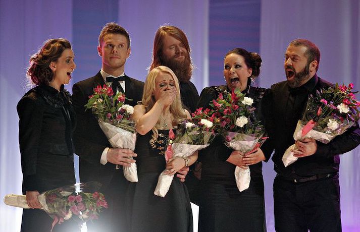 Háspenna í græna herberginu 13. febrúar 2012 21:00 Strákarnir í Bláum Ópal voru ánægðir þegar tilkynnt var að þeir áttu möguleika á sigri. Fréttablaðið/Daníel Ljósmyndari Fréttablaðsis var í Hörpu á laugardagskvöld og fangaði stemninguna í græna herberginu og þegar úrslitin voru kynnt. Lag Gretu Salóme Stefánsdóttur, Mundu eftir mér, verður fulltrúi Íslands í Eurovision í Aserbaídsjan í maí. Greta og Jón Jósep Snæbjörnsson flytja lagið. Lag Ingólfs Þórarinssonar og Axels Árnasonar, Stattu upp, var í öðru sæti. Mest lesið Bestu, stærstu, slökustu og verstu myndir ársins 2025 Bíó og sjónvarp Eru þetta ljótustu og fallegustu nýbyggingar ársins? Menning Leitin á Svínafellsjökli sem hefur enn ekki skilað árangri Lífið Frægir fundu ástina 2025 Lífið Bandalag listamanna lýsir yfir stuðningi við Dóru Menning Íslenska stelpan sem gerðist mormóni Lífið „Sat í átta klukkutíma á dag og horfði út um gluggann“ Menning Best klæddu Íslendingarnir 2025 Tíska og hönnun „Við erum öll dauð hvort sem er“ Lífið „Ef einhver telur að ég hljóti að vera sjúkur, þá verður að hafa það“ Menning Fleiri fréttir Leitin á Svínafellsjökli sem hefur enn ekki skilað árangri Krakkatía vikunnar: Ísskápastríð, Eivör og Grafarvogur „Við byrjuðum að hlusta á jólalög í júlí“ Frægir fundu ástina 2025 Íslenska stelpan sem gerðist mormóni „Við erum öll dauð hvort sem er“ Fréttatía vikunnar: Rob Reiner, Dóra Björt og fullir unglingar 500 Esjuferðir á árinu: „Sumir hrista bara hausinn og lygna augunum“ Útgefandi Walliams lætur hann róa Fáklæddir barþjónar þegar Regnboginn opnaði í Bíó Paradís Þriðja stigs krabbameinið það besta sem kom fyrir hann Dúnninn bakaður í fjóra sólarhringa til að drepa allt í honum Heilsu krónprinsessunnar hrakar gríðarlega Pete orðinn pabbi Nýkominn úr meðferð og „sjaldan verið betur nýsleginn túskildingur“ Laufey á lista Obama „Ég heyrði þá kalla á mig en gat engu svarað“ Opnar sig í fyrsta sinn: Kyssti yfirmanninn í fyrsta sinn þetta kvöld Sex hundruð ára kastali Björns í Frakklandi svo gott sem klár Fyrirsát að Valgerði, Stund Pírata og meint alzheimer Þráins Bertelssonar „Það jafnar sig enginn eftir svona og við munum aldrei gera það“ Ungir sjálfstæðismenn gefa út vandræðalegt fjölskyldudagatal Keough sögð líffræðileg móðir Benjamin Travolta Rússland aftur í Eurovision - undirskriftasöfnun Óskarsverðlaununum streymt á Youtube Karmað muni bíta þjófinn í rassinn þegar títan og glyttan byrja að dansa í hitanum Hreimur og Ólafur Darri perluvinir sem horfa á enska boltann saman „Ég er mamman sem gat aldrei gefið honum það sem hann óskaði sér“ Áttu að hitta Reiner-hjónin daginn örlagaríka Leynigesturinn hitti Heimi Karls beint í hjartastað Sjá meira