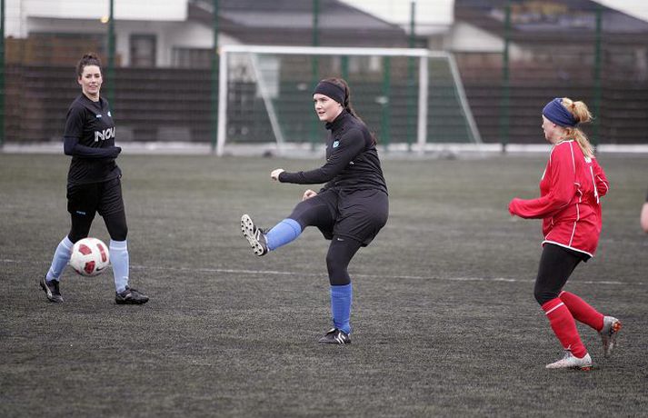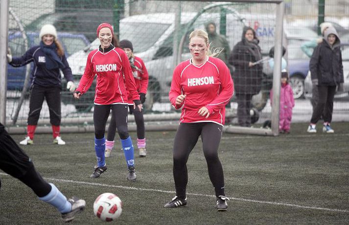 FC Ógn hafði betur á KR-vellinum 12. mars 2012 16:30 Lið FC Ógnar hafði betur í viðureign liðsins við stjörnum prýtt lið frægra kvenna. fréttablaðið/daníel Hart var barist er knattspyrnuliðið FC Ógn keppti á móti liði frægra kvenna á KR-vellinum á laugardag. Leikurinn var til styrktar Rakel Söru Magnúsdóttur sem hefur fimm sinnum greinst með krabbamein. Lið FC Ógnar hafði betur í viðureign liðanna og skoraði um 20 mörk á meðan stjörnuliðið skoraði einungis tvö. Í tilraun til að rétta af markamuninn var ákveðið að markmaður FC Ógnar fengi ekki að verja skot með höndum auk þess sem Saga Garðarsdóttir, liðsmaður Ógnar, lék um stund fyrir hönd rithöfundarins Tobbu Marinósdóttur. Liðsmenn skildu þó sáttir að lokum enda var markmið leiksins fyrst og fremst að leggja góðum málstað lið. Smellið á myndina til að fletta myndasafninu. Mest lesið „Að fá þessa greiningu er ekki endapunktur“ Lífið Ekki er allt sem sýnist í Dimmu Tónlist Fortíðarþrá einkenndi endurkomuna á stóra sviðið Lífið Eilíf glötun bíður ekki endilega bóka í ruslagámum Lífið Krakkatía vikunnar: Skoffín, geitur og jarðarber Lífið Neyðarlegast að handleggsbrjóta vinkonu á sviði Lífið Allir og amma þeirra í bókaklúbb Lífið Brúðkaupsdagurinn skilaði rúmum þremur milljónum Lífið Steig fram eftir að sex ára dóttir hennar varð fyrir rasisma Lífið Ákváðu að gifta sig strax þegar ljóst var að tíminn væri naumur Lífið Fleiri fréttir Fortíðarþrá einkenndi endurkomuna á stóra sviðið Eilíf glötun bíður ekki endilega bóka í ruslagámum „Að fá þessa greiningu er ekki endapunktur“ Neyðarlegast að handleggsbrjóta vinkonu á sviði Krakkatía vikunnar: Skoffín, geitur og jarðarber Allir og amma þeirra í bókaklúbb Brúðkaupsdagurinn skilaði rúmum þremur milljónum Tónlist sem tekur á skömm og ótta með nokkrum blótsyrðum Steig fram eftir að sex ára dóttir hennar varð fyrir rasisma Mildari og þolinmóðari við sjálfa sig eftir greininguna Fréttatía vikunnar: Bó, vatn og vopnahlé Leitaði upprunans og fékk óvænta frænku í heimsókn Páll Edwald og Selma Eir trúlofuð „Er ég að klikka strax í 50?“ „Maður þarf að gera alla hluti upp“ Umdeildi brautryðjandinn Afrika Bambaataa allur Lærði að lifa lífinu upp á nýtt eftir alvarleg veikindi Sjarmatröllið sem setti popptónlist í öndvegi Halla gerir undantekningu vegna andlátsins Það er komið gó hjá Bó Svala minnist pabba síns Tekur við af dóttur kærastans Lifir með sjúkdóminum en lætur ekkert stöðva sig Skilnaður foreldranna mótað hana einna mest Hórdómur vinsældanna: Núll stjörnur Hvað veistu um… styttur í Reykjavík? Söfnuðu kleinuhringjum ofan í fötu með skrautlegri aðferð Algengur misskilningur að hávært fólk sé með mesta sjálfstraustið The Streets koma fram á Iceland Airwaves „Það er enginn að fara senda þig í stríð“ Sjá meira