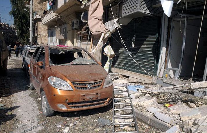 Öflug bílsprengja sprakk skammt frá öryggisbyggingu sýrlensku ríkisstjórnarinnar í borginni Aleppo í gær. Yfirvöld í Sýrlandi segja að hryðjuverkamenn hafi staðið á bak við sprenginguna. Bættu þau við að einn lögreglumaður og einn almennur borgari hafi farist í sprengingunni og þrjátíu til viðbótar hafi særst. Þetta var önnur árásin í landinu á tveimur dögum. Á laugardag fórust 27 manns í þremur sjálfsmorðssprengjuárásum í höfuðborginni Damaskus. Stjórnvöld segja að árásirnar tengist uppreisninni gegn forsetanum Bashar al-Assad sem hefur staðið yfir í eitt ár. Sýrlenska þjóðarráðið, samtök stjórnarandstæðinga, hafa á móti sakað yfirvöld um að standa á bak við sumar sprengingarnar til að vekja ótta hjá almenningi og sýna fram á að uppreisnarsinnarnir séu hryðjuverkamenn. Margar sjálfsmorðsárásir hafa verið gerðar í Aleppo og Damaskus, tveimur stærstu borgum Sýrlands, frá því í desember. Mikill stuðningur er við Assad í báðum borgunum. Enginn hefur enn lýst ábyrgð á árásunum um helgina á hendur sér. Sameinuðu þjóðirnar telja að yfir átta þúsund manns hafi látist í átökunum á þessu eina ári. Bandarísk yfirvöld telja að Íranar séu að aðstoða sýrlensk stjórnvöld með því að sjá þeim fyrir vopnum í baráttunni við stjórnarandstæðinga. Írakar hafa viðrað áhyggjur sínar við sendiherra Írans í Bagdad vegna málsins. Lítið eftirlit er með lofthelginni yfir Írak og því er auðvelt að flytja vopn frá Íran yfir til Sýrlands. freyr@frettabladid.is