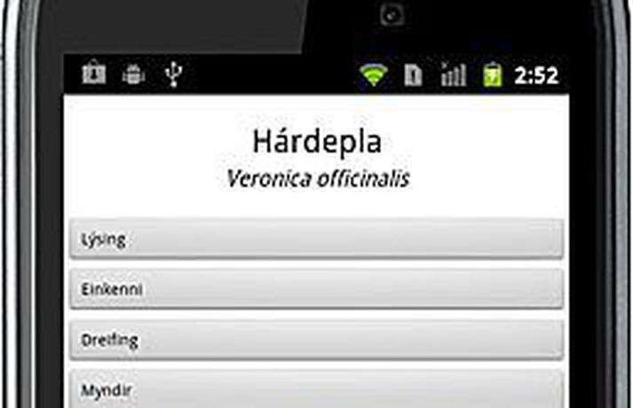 Flóra Íslands greind í gegnum farsímann 23. maí 2012 05:30 Skjámyndirnar sýna þrjá valmöguleika af mörg hundruð. Notandinn er leiddur til niðurstöðu með skýringarmyndum; einföldum og flóknari valmöguleikum. mynd/sigmundur Íslenskur hugbúnaður fyrir snjallsíma og spjaldtölvur til að greina plöntur á einfaldan hátt kemur senn á markað. Tæknin nýtist við kennslu og við alla almenna og faglega náttúruskoðun. Fugla- og pöddulyklar eru á næsta leiti. Íslenskir hugvits- og náttúruáhugamenn hafa þróað greiningarlykil fyrir flóru Íslands fyrir Android stýrikerfið í farsíma og spjaldtölvur. Greiningarlyklar fyrir fugla og skordýr eru á næsta leiti. Tæknin gerir leikmönnum jafnt sem sérfræðingum kleift að greina fyrirbæri í náttúrunni á einfaldan hátt. Plöntulykillinn, eins og hann er kallaður, hefur að geyma rúmlega 800 ljósmyndir af um 470 plöntum, ásamt 400 teikningum sem skýra frá hugtökum á myndrænan hátt. Sigmundur Helgi Brink, aðjúnkt hjá Landbúnaðarháskólanum, átti frumkvæði að verkefninu og hefur unnið að þróun þess ásamt Guðmundi Frey Hallgrímssyni forritara. „Það er ekkert sambærilegt til annars staðar en hugmyndafræðin á bakvið plöntulykillinn hefur alla tíð snúist um að fræða og upplýsa. Það má segja að þessi tækni hafi óendanlega möguleika og fugla- og pöddulykill eru langt komnir. Greiningarlykill fyrir íslenska steina er á hugmyndastigi,“ segir Sigmundur. Gagnvirkni spilar stórt hlutverk þar sem hugbúnaðurinn krefst þess af notandanum að skoða plöntuna, velja fyrir ákveðnum einkennum og smella svo á snertiskjá í símanum sínum. Þannig er notandinn leiddur í gegnum grasafræðina með hundruðum skýringarmynda. Sigmundur segir að greiningarlykillinn geti þjónað hlutverki í tengslum við ferðaiðnaðinn og landkynningu, innan lands sem utan. Fræðsluhlutverk hans er ótvírætt hvort sem um er að ræða umhverfisfræði, náttúrufræði, vistfræði, menningu og síðast en ekki síst nýsköpun. Hugbúnaðurinn er einfaldur í notkun og er ætlaður áhugamönnum um grasafræði á öllum aldri. „Ef þú ert barn og kannt varla að lesa þá getur þú valið lit eða lögun plöntunnar en þeir sem eru lengra komnir geta nýtt sér þungar skilgreiningar eins og einfræja aldin án svifhára eða klofaldin sem klofna í einfræja hluta, svo dæmi sé tekið. Lykillinn býður því upp á valmöguleika fyrir alla, möguleikarnir eru því ótal margir og með tímanum fer fólk að beita lyklinum fyrir sig á flóknari atriði eða spurningar.“ svavar@frettabladid.is Mest lesið Bóndakonan á Bakkakoti er látin Innlent Ógn á galakvöldverði og forsetinn fluttur á brott Erlent Hlaut alvarlega höfuðáverka eftir árekstur á rafhlaupahjóli Erlent Örvæntir ekki yfir fregnum af falli meirihlutans Innlent Trump lífgar í gömlum glæðum Falklandseyjastríðsins fyrir konunglega heimsókn Erlent „Þessi snillingur er náttúrulega ótrúlegur“ Innlent Skemmdarvargar á tjaldsvæði í Höfðavík Innlent Orbán hættir á þingi Erlent Samfylking og Miðflokkur á flugi í Kópavogi Innlent Sefur í kjallaranum þar sem Heuermann myrti og sundurlimaði fórnarlömb sín Erlent Fleiri fréttir Bóndakonan á Bakkakoti er látin Örvæntir ekki yfir fregnum af falli meirihlutans „Þessi snillingur er náttúrulega ótrúlegur“ Skemmdarvargar á tjaldsvæði í Höfðavík Samfylking og Miðflokkur á flugi í Kópavogi Inni og úti: „Kannanir eru nú bara kannanir“ Slíkur fjöldi ekki sést síðustu fimmtíu ár Kosningaspá Vísis: Líkur Alberts aukast en Bjarnveigar dvína Handtekinn eftir að hafa valdið umferðarslysi Fjölgar í hópi sakborninga og ráðist í húsleit „Viðreisn er í algjörri lykilstöðu“ Bilið á milli turnanna breikkar Vendingar í borginni og tónleikar í heimahúsum Fimm bíla árekstur á Reykjanesbraut Listaverkið muni auka öryggi og vernda náttúruna á svæðinu Sinueldur kviknaði við bensínstöð Safna gögnum um ferðamanninn og meta stöðuna daglega Bein útsending: Þorgerður situr fyrir svörum um þjóðaratkvæðagreiðsluna Fékk í skrúfuna skammt frá landi Hvarf Hákonar á borði ríkislögreglustjóra Raforkureikningur í dreifbýli gæti lækkað strax í júlí Leita íslensks manns í Búdapest og ráðherra boðar jöfnun á raforkukostnaði Réðu aftur starfsmann sem var rekinn í siðanefndarfári Engin ákvörðun tekin eftir uppsögn dagdvalarsamnings Alvarlegt slys þegar ekið var á aldraða konu Starfsfólki MAST ógnað: „Ég veit hvar þú átt heima“ Fullyrðingar um ETS-kerfi og strandsiglingar standast ekki Hákon Þór hvarf sporlaust í Búdapest Sigrún Helga nýr forseti Röskvu Reykur yfir Keflavíkurflugvelli reyndist vera æfing Sjá meira