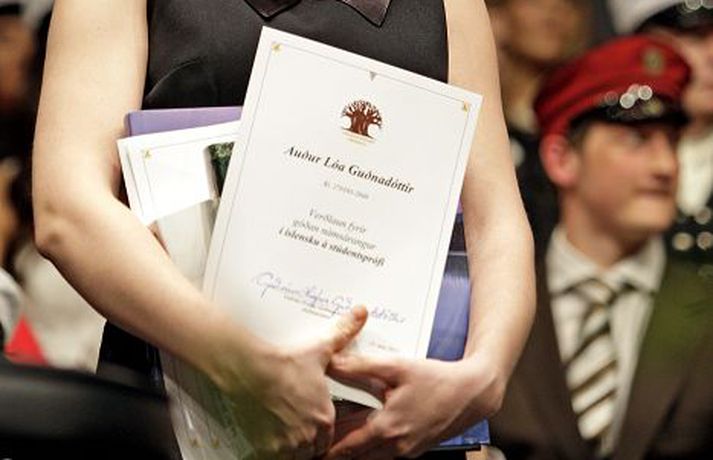 „Ég hef verið að leggja hart að mér og reyna að gera mitt besta," segir Auður Lóa Guðnadóttir, nítján ára gamall dúx Fjölbrautarskólans í Breiðholti, spurð hvort árangurinn hafi komið henni á óvart. Auður Lóa fékk 9,05 í meðaleinkunn en hún lauk stúdentsprófi af listnámsbraut skólans á þremur árum. Hún hlaut að auki fjölda verðlauna fyrir námsárangur í einstökum greinum á útskriftarathöfninni, sem fór fram í Háskólabíói í gærdag. Auður Lóa segist ekki hafa verið ákveðin í því frá upphafi að klára námið á þremur árum. „Nei, ég var búin að taka eitthvað smá í ensku í fjarnámi áður og svo ákvað ég eftir fyrsta árið að það væri jafnvel bara skemmtilegra að taka þetta á þremur árum því myndlistarbrautin er í sjálfu sér bara þrjú ár." Fyrr í vikunni fékk Auður Lóa bréf þess efnis að hún hefði komist inn í myndlistardeild Listaháskóla Íslands, og þar hefur hún nám í haust. „Ég hélt eftir viðtalið að ég myndi ekki komast inn, mér fannst ég alveg klúðra því, en svo fékk ég bréf fyrr í vikunni," segir hún. Fjöldi nemenda hefur farið af listnámsbrautinni yfir í Listaháskólann og Auður Lóa segist þekkja nokkra aðra af brautinni sem hafi sótt um nú. Allir komust inn. Hún segir að námið veiti mjög góðan undirbúning. Fréttablaðið náði tali af Auði Lóu stuttu eftir að útskriftarathöfninni lauk. Hún fagnaði með veislu seinni partinn í gær. En hvað tekur svo við fram að náminu í Listaháskólanum? „Í sumar ætla ég að fara með fjölskyldunni til Parísar í þrjár vikur. Annars verð ég að vinna í Fossvogskirkjugarði." thorunn@frettabladid.is