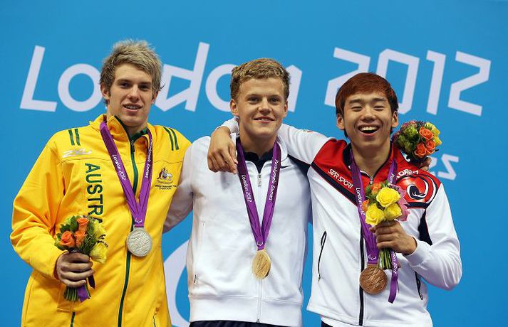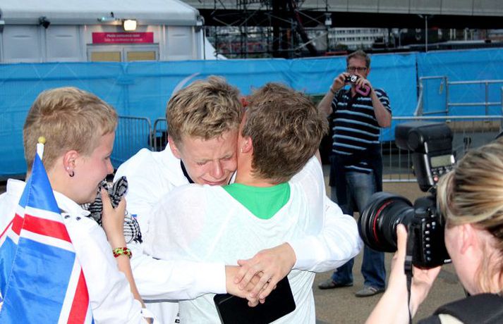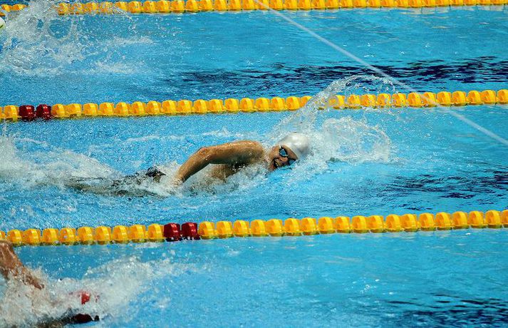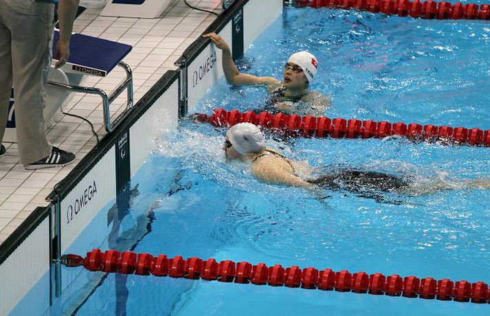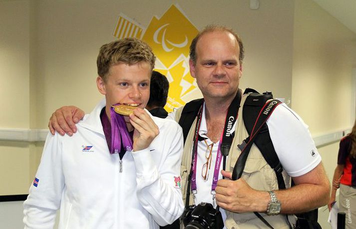 Jón Margeir fagnaði vel og innilega eftir að hafa tryggt sér gullið í 200 metra skriðsundi. Þetta eru fyrstu verðlaun Íslendings á Ólympíumóti síðan í Aþenu 2004. Íslenska þjóðin samfagnaði Jóni Margeiri Sverrissyni þegar hann tryggði sér gullverðlaunin í 200 metra skriðsundi í flokki hreyfihamlaðra með nýju heimsmeti á Ólympíumóti fatlaðra í London á sunnudag. Þetta eru fyrstu verðlaun Íslendings á Ólympíumóti fatlaðra síðan í Aþenu árið 2004. Þá vann sundkonan Kristín Rós Hákonardóttir gull og brons og spretthlauparinn Jón Oddur Sigurðsson hlaut tvenn silfurverðlaun. Tárin runnu í stríðum straumum þegar Jóni Margeiri var innilega fagnað af fjölskyldu og vinum að sundi loknu, enda var hann þar að uppskera ríkulega eftir áralanga taumlausa vinnu. Auk þess flykktust tugir aðdáenda um kappann sem hafði ekki undan að skrifa eiginhandaráritanir. Þrír íþróttamenn eru í íslenska hópnum auk Jóns Margeirs, sundkonan Kolbrún Alda Stefánsdóttir og frjálsíþróttafólkið Matthildur Ylfa Þorsteinsdóttir og Helgi Sveinsson. Matthildur keppir í 200 metra hlaupi á morgun, Jón Margeir og Kolbrún Alda stinga sér aftur í laugina á fimmtudaginn og á föstudag keppir Helgi í 100 metra hlaupi og spjótkasti. thorgils@frettabladid.is