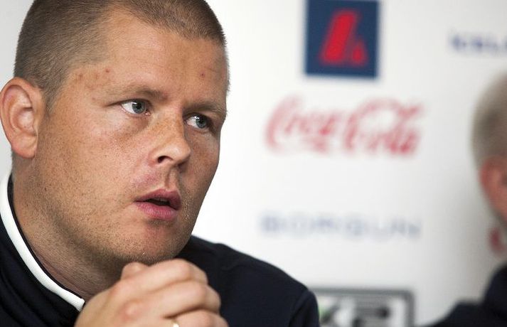 Íslenska kvennalandsliðið í fótbolta er í lykilstöðu fyrir lokaleiki sína í undankeppni Evrópumótsins í Svíþjóð 2013. Staðan á toppi riðilsins er vissulega góð en landsliðsþjálfarinn Sigurður Ragnar Eyjólfsson þarf hugsanlega að fara í síðustu tvo leikina án tveggja af allra mikilvægustu leikmönnum liðsins. Sigurður Ragnar tilkynnti í gær 22 manna hóp fyrir leikina tvo á móti Norður-Írlandi á Laugardalsvelli 15. september og á móti Noregi á Ulleval fjórum dögum síðar. Sigur á Norður-Írum tryggir sæti í umspili og þá bíður liðsins úrslitaleikur við Norðmenn um sæti í úrslitakeppni EM. Það brá samt örugglega mörgum þegar engin Margrét Lára Viðarsdóttir var á listanum og ekki batnaði ástandið þegar þjálfarinn ræddi þann möguleika að liðið yrði kannski líka án fyrirliðans Katrínar Jónsdóttur. Sigurður Ragnar var þó hvergi banginn þegar hann ræddi við blaðamenn í gær og hóf fundinn á því að ræða ungu stelpurnar en fimm 17 og 18 ára stelpur er í hópnum að þessu sinni. „Það kemur kannski á óvart að það eru margir ungir leikmenn í hópnum en það eru allt leikmenn sem hafa staðið sig mjög vel í Pepsi-deildinni. Það eru spennandi leikmenn að koma upp," sagði Sigurður Ragnar. Sandra María Jessen og Elín Metta Jensen eru báðar fæddar 1995 en samt búnar að skora 17 og 16 mörk í Pepsi-deildinni í sumar. Það má búast við að önnur þeirra fái að spila því liðið þarf á markaskorara að halda. Enginn má vera ómissandi„Auðvitað vildum við hafa Margréti Láru, okkar aðalmarkaskorara, og Katrínu, fyrirliðann okkar í hjarta varnarinnar. Það verður að vera þannig að enginn sé ómissandi og við verðum að þróa liðið okkar þannig að enginn sé ómissandi," sagði Sigurður Ragnar. Margrét Lára ætlaði að koma af krafti inn í haust eftir að hafa hvílt sig á fótboltaæfingum í allt sumar. „Hún var í sumar að hreyfa sig í annarri hreyfingu heldur en fótbolta. Hún var að hjóla mikið, synda og styrkja sig. Við vonuðumst til að hún myndi ná sér af þessum meiðslum og verða betri. Hún fór síðan til Kristianstad og markmiðið hennar var að spila á móti Malmö. Hún fór á tvær knattspyrnuæfingar fyrir þann leik og fékk mjög slæm einkenni aftur og þau sömu og hún var að finna fyrir í upphafi sumars og hefur verið að finna fyrir undanfarin ár," sagði Sigurður Ragnar og bætti við: Margrét Lára á leið í aðgerð„Þetta er búið að vera mjög erfitt fyrir hana í langan tíma en samt er ótrúlegt hvað hún hefur náð að spila þrátt fyrir þessi meiðsli. Hún var markahæst í Svíþjóð með þessi meiðsli og spilaði fyrir Potsdam, eitt besta félagslið í Evrópu, með þessi meiðsli. Maður getur bara ímyndað sér hvernig hún verður ef hún nær sér góðri af þessum meiðslum sem hún vonandi gerir. Hún ætlar að leita sér frekari lækninga og jafnvel fara í aðgerð," sagði Sigurður Ragnar og það er líka mikil óvissa með fyrirliðann. „Þetta eru gríðarlega mikilvægir leikir fyrir okkur og Katrín er fyrirliðinn okkar. Hún spilar líka stöðu sem við erum ekki með mikla breidd í. Við höldum henni inni og vonum það besta. Katrín tognaði aftan í læri 4. júlí og hún hefur ekki spilað leik síðan. Hún hefur verið að æfa og halda sér í formi og smátt og smátt hefur hún verið að skána," sagði Sigurður Ragnar. Ferskir straumar inn í liðiðSigurður Ragnar kallar nú á fimm mjög unga leikmenn fyrir afar mikilvæga landsleiki. „Fjórar af þessum leikmönnum fóru mjög langt með 17 ára landsliðinu í Evrópukeppninni eða alla leið í undanúrslitin. Þær eru vanar að ná árangri og eru mjög metnaðarfullar. Þær koma kannski með ferska strauma inn í landsliðið. Ég held að við munum sjá einhverjar þeirra í öðrum eða jafnvel báðum leikjunum. Það er bara að fjölmenna á völlinn og sjá ungu og efnilegu stelpurnar okkar og svo allar hinar sem eru orðnar svo góðar," sagði Sigurður Ragnar að lokum.