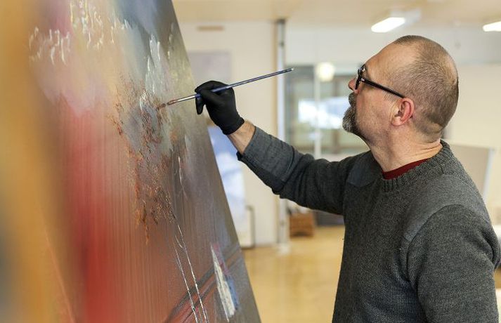 Pólitísk sýning um innri frið Bergsteinn skrifar 31. október 2012 00:01 Tolli Morthens Myndir/ Anton Myndlistarmaðurinn Þorlákur Kristinsson Morthens - Tolli - fagnar 30 ára starfsafmæli um þessar mundir og opnar af því tilefni sýninguna Friður í Smiðjunni Listhúsi á morgun. „Ég tileinka sýninguna því að það eru 30 ár síðan ég hélt ásamt félögum mínum sýninguna „Sjö" í Norræna húsinu árið 1982, sem var eiginlega upphaf „nýja málverksins" svokallaða hér á landi. Það hefur verið töluverð breyting frá þessum hráa pönkaða stíl sem ég hafði í upphafi yfir í þessar ljóðrænu landslagsmyndir, sem ég hef einbeitt mér að í seinni tíð, og endurspegla fremur andlega heim en efnislegan. Sá heimur ber með sér frið og hugarró." Tolli segir ferilinn vera skrásetningu á ástandi listamannsins á hverjum tíma og í sínu tilfelli hafi það verið alla vega. „Það voru stór tímamót hjá mér fyrir sautján árum árum þegar ég lagði fíkniefna og áfengisneyslu á hilluna og hóf nýtt lf án slíkra stoðefna. Slíkt ferðalag leiðir mann alltaf lengra og lengra í sjálfskönnun þar sem maður finnur sífellt meiri frið." En þótt efnistökin séu persónuleg segir Tolli inntak sýningarinnar á hinn bóginn samfélagslegt og pólitískt. „Ég legg þessa yfirskrift inn í samfélagsumræðuna eins og hún er í dag því við þurfum á meiri frið að halda, jafnvel þótt menn greini á málefnalega. Þetta tilfinningalega stjórnleysi í þjóðfélaginu, gremjan og reiðin, virðist ekkert vera á undanhaldi heldur finna sér nýjan farveg. Sú reiði sem reis upp í hruninu er í raun viðhaldið af þeim sem iðka stjórnmálin.Ég vil ekki endilega að menn skipti um skoðun í stjórnmálum, heldur vinnubrögð. Að menn losi sig undan karma fortíðarinnar, þessu oki að þurfa að ganga inn í gremju og reiði genginna kynslóða." Mest lesið Íslenskur mágur Rex Heuermann efins um ódæði hans Lífið Vinsælustu myndböndin á Vísi á árinu Lífið Frægir fjölguðu sér árið 2025 Lífið Ásgeir Kolbeins furðu lostinn yfir steini í jólapakkanum Lífið Skilaði týndum heyrnartólum alla leið til Hamborgar Lífið Gítarleikari The Cure er látinn Lífið Þessi smurðu mest á reikning Jommunnar Lífið Sjáðu nýja stiklu úr stjörnuprýddri hasarmynd Balta Lífið Sat uppi með sex kíló af kæstri skötu Lífið „Fyrri kona mannsins míns er með Parkinson, ekki ég“ Áskorun Fleiri fréttir Íslenskur mágur Rex Heuermann efins um ódæði hans Vinsælustu myndböndin á Vísi á árinu Frægir fjölguðu sér árið 2025 Gítarleikari The Cure er látinn Skilaði týndum heyrnartólum alla leið til Hamborgar Sjáðu nýja stiklu úr stjörnuprýddri hasarmynd Balta Ásgeir Kolbeins furðu lostinn yfir steini í jólapakkanum Viðtöl ársins 2025: Missir, afsögn ráðherra, umsáturseinelti og læknir sem þóttist vera með krabbamein Sat uppi með sex kíló af kæstri skötu Kristmundur Axel tók við af Bubba Seinfeld og Friends-leikari látinn Jólagjafir íslenskra vinnustaða Deildar meiningar um lyktina: „Þetta er byrjendaskata“ Fréttamenn gæða sér á skötu í gegnum árin Laufey á landinu Þar sem vinsælustu lög landsins verða til Þessi smurðu mest á reikning Jommunnar Einhverfir kaþólikkar um allan heim heita Þorlákur Cooper bað móðurina um hönd Hadid „Mér finnst gaman að láta sjokkera mig“ Brúðkaup ársins 2025 Heitt í hamsi hjá gestum á „helvíti á jörðu“ í Breiðholti Chris Rea hefur ekið heim um jólin í síðasta skipti Saga jarðaði alla við borðið Vísa ásökunum Skinner um kosningasvindl á bug Kimmel ávarpar bresku þjóðina: Frábært ár fyrir fasisma „Ég hugsa til þín á hverjum einasta degi“ Stjörnulífið: Óskar tíkunum gleðilegra jóla Veikindi eyðilögðu líka stóru stund Manúelu Hefur misst vini og kunningja vegna skoðana sinna Sjá meira
