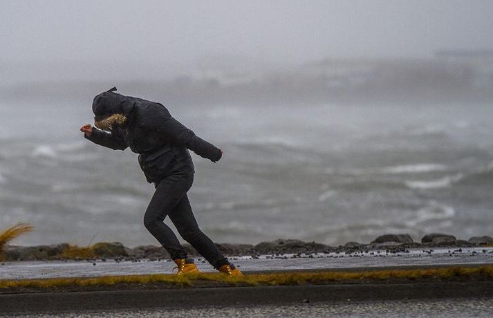 Þök fuku í heilu lagi af húsum, malbik flettist af vegum, gámar og bílar fuku og rafmagnsstaurar brotnuðu í ofsaveðrinu sem gekk yfir landið í gær og gengur smám saman niður í dag og á morgun. Tugir manna leituðu til bráðadeildar Landspítalans vegna meiðsla. „Það er bara vitlaust veður,“ sagði Helgi Sigurmonsson, bóndi í Hraunsmúla í Staðarsveit á sunnanverðu Snæfellsnesi, þar sem vindstyrkur hafði mælst mestur á landinu í gær. Í hviðum fór vindurinn allt upp í 61 metra á sekúndu í Hraunsmúla en að meðaltali var hann 38 metrar á sekúndu þegar verst lét síðdegis. „Það er farinn hérna fjórði partur af hlöðuþaki. Ég fékk tíu björgunarmenn og þeim tókst að hefta þetta niður, en ég veit ekki hvað verður. Og svo var nú rafmagnið að fara líka rétt í þessu, þannig að það er orðið sjónvarpslaust. Þetta er alveg skelfilegt og þetta er ekki búið,“ sagði Helgi þegar Fréttablaðið ræddi við hann um kvöldmatarleytið. Óvenjumikið var um stór tjón í óveðrinu í gær. „Þau skipta örugglega tugum,“ segir Jónas Guðmundsson hjá Slysavarnarfélaginu Landsbjörgu sem stóð í ströngu við að aðstoða fólk um land allt. Hátt í 300 manns tóku þátt í störfum björgunarsveitanna. Nærri 400 aðstoðarbeiðnir bárust á höfuðborgarsvæðinu en á landinu öllu höfðu björgunarsveitir sinnt hátt í 500 útköllum í gærkvöld. Reiknað var með að útköllin myndu halda áfram alla nóttina þótt ástandið hafi eitthvað verið byrjað að róast þegar leið á kvöldið í gær. Mikið hefur verið um að þök hafi fokið af í heilu lagi af húsum. Bílar og gámar fuku, malbik flettist hreinlega af vegum og bæði tré og rafmagnsstaurar brotnuðu. Tugir manna þurftu að leita til bráðadeildar Landspítalans. Ástandið var verst á höfuðborgarsvæðinu og svo í Vík í Mýrdal og þar í kring. Á Geldinganesi í Reykjavík náði meðalvindur 38 metrum á sekúndu síðdegis og var því jafn öflugur og í Hraunsmúla. Hviðurnar á Geldinganesi komust upp í 52 metra á sekúndu. „Það sem hefur verið óvenjulegt hér á höfuðborgarsvæðinu er að vindmögnun á Kjalarnesinu náði mun lengra frá Esjunni en venjulega,“ segir Teitur Arason, veðurfræðingur á Veðurstofu Íslands. Hann segir líka óvenjulegt við þetta ofsaveður að það hafi náð til landsins alls í óvenju langan tíma. „Flest árin fær einhver landshluti svona veður, en í þetta skiptið er mjög hvasst á landinu öllu.“ Veðurofsinn skýrist af því að mikil hæð er yfir Grænlandi ásamt óvenju djúpri lægð fyrir austan land sem ekkert gefur eftir. „Þetta er eiginlega erfiðasta staða sem hægt er að fá,“ segir Teitur. „Og það er frekar leiðinlegt að fá þetta svona snemma vetrar.“ Þetta ástand hefur verið viðvarandi frá þriðjudegi en náði hámarki í gær. Í dag má samt reikna með miklu hvassviðri um land allt, en svo dettur það víðast hvar niður í nótt þegar hæðin yfir Grænlandi mjakast inn yfir landið. „Þetta gengur fyrst niður á Norðvesturlandi en síðast á Austurlandi þar sem hvasst verður fram eftir sunnudeginum,“ segir Teitur.fréttablaðið/vilhelm