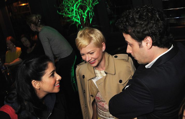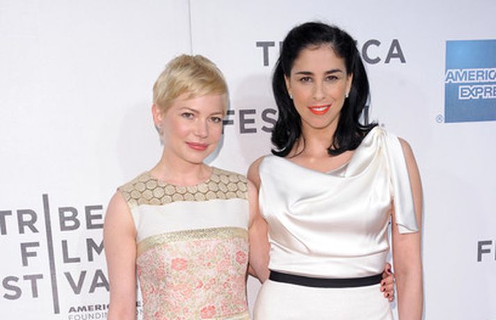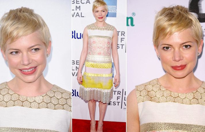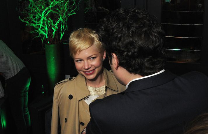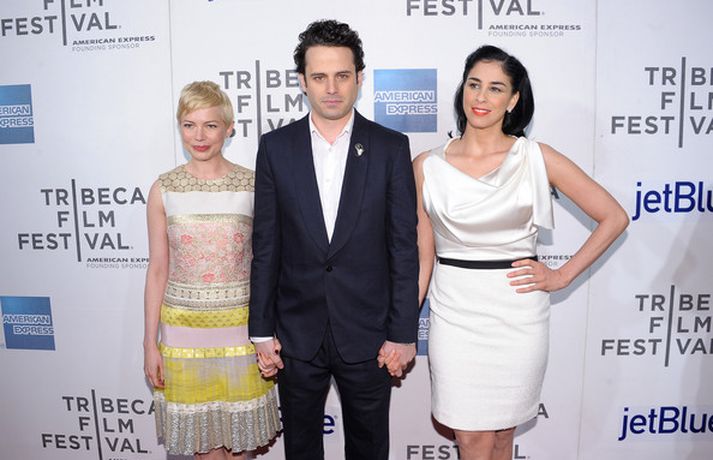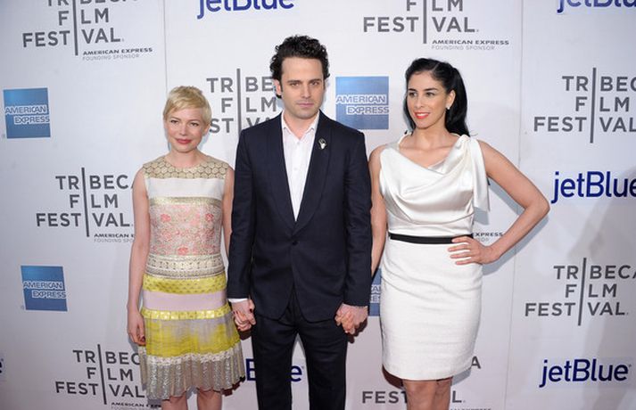 Leikkonan Michelle Williams, 31 árs, stillti sér upp á rauða dreglinum klædd í munstraðan Giambattista Valli kjól á frumsýningu kvikmyndarinnar Take This Waltz á Tribeca kvikmyndahátíðinni í New York í gær. Kærasti Michelle, Jason Segel, mætti baksviðs til að styðja unnustu sína á frumsýningunni.