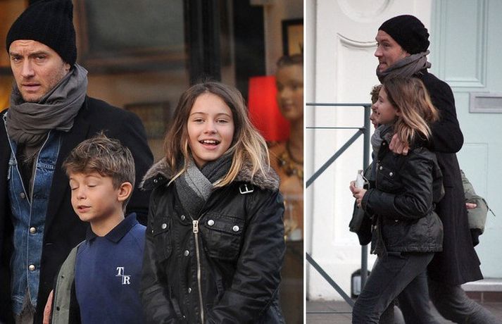 Leikarinn Jude Law, 39 ára, og börnin hans, Íris og Rudy röltu um Soho hverfið í London. Eins og sjá má á myndunum snæddu þau saman. Law og Frost kynntust við tökur á kvikmyndinni Shopping árið 1994 og eiga saman þrjú börn. Parið skildi árið 2003 og stuttu síðar tók Law saman við Miller. „Jude og Sadie voru mjög náin og eru það enn vegna barna sinna. Þau fara reglulega í frí saman sem fjölskylda og eyddu síðustu jólum einnig saman. Eftir að Jude hætti með leikkonunni Siennu leitaði hann huggunnar hjá Sadie. Hann er þreyttur á því að vera einhleypur og þráir stöðugleika og nánd. Jude og Sadie eru farin að átta sig á því að þeim þykir enn mjög vænt um hvort annað,“ var haft eftir vini parsins. Mér líður eins og ég sé sterkari og ánægðari í dag en einnig sár og þreyttur, lét leikarinn hafa eftir sér í kjölfar skilnaðarins.