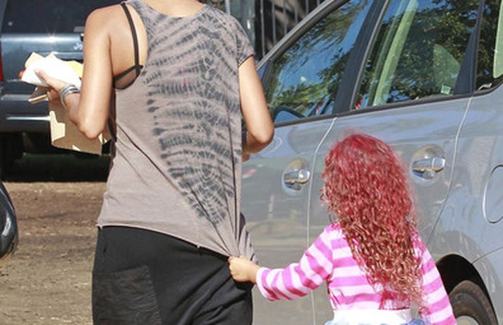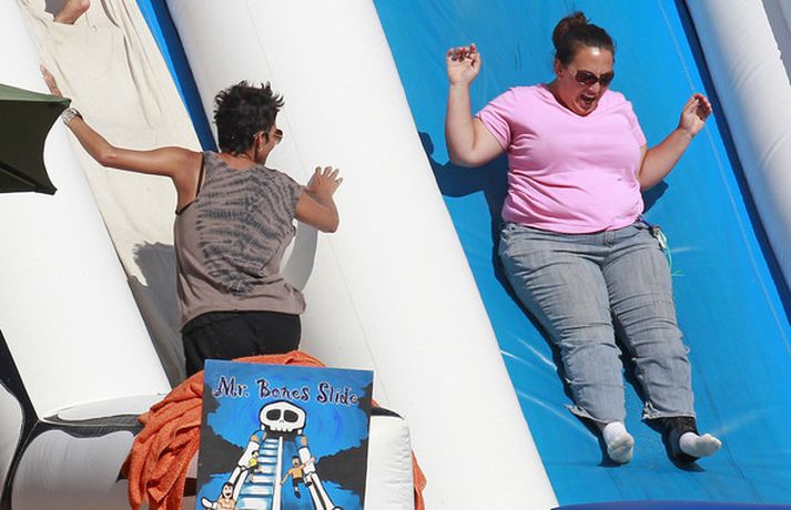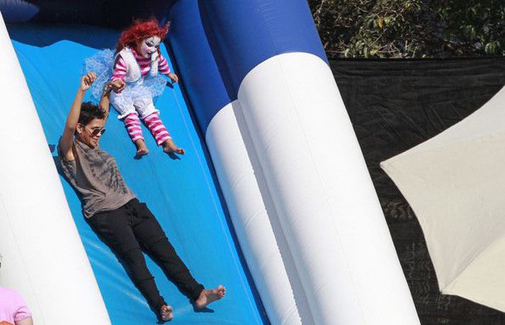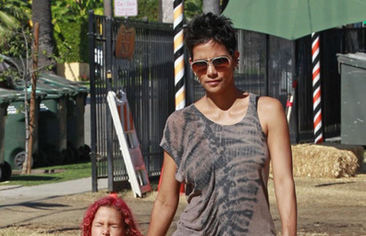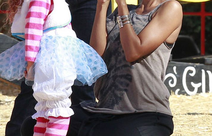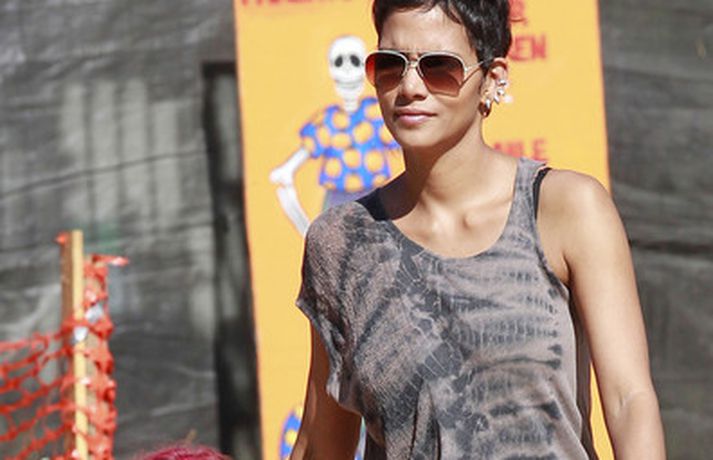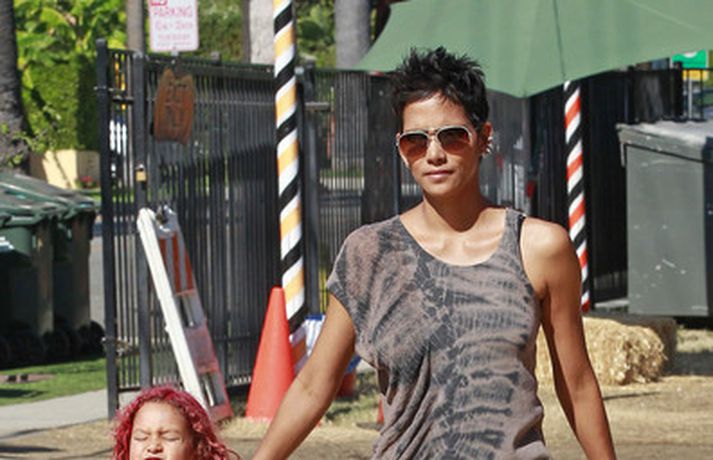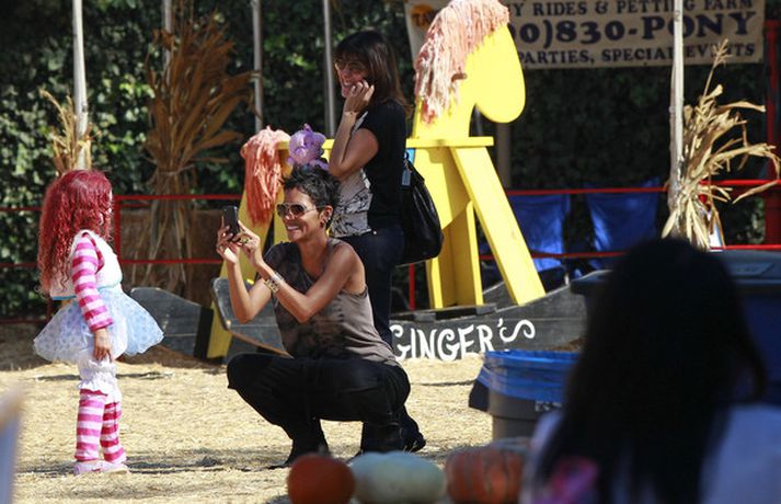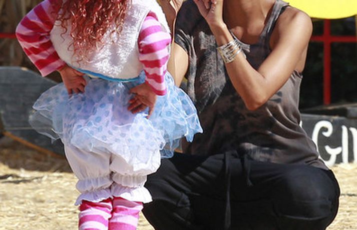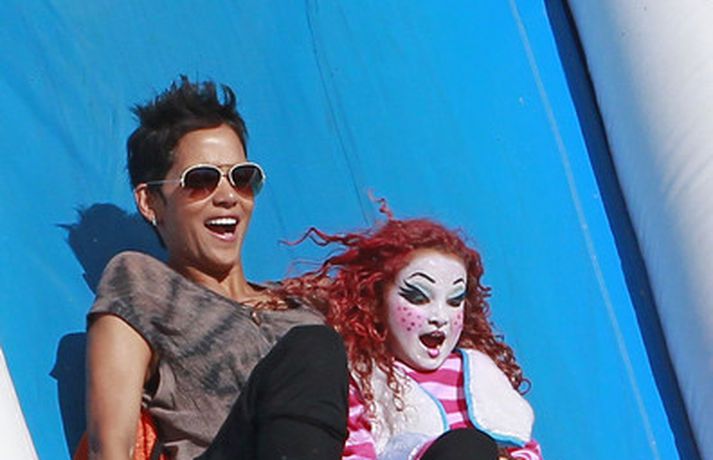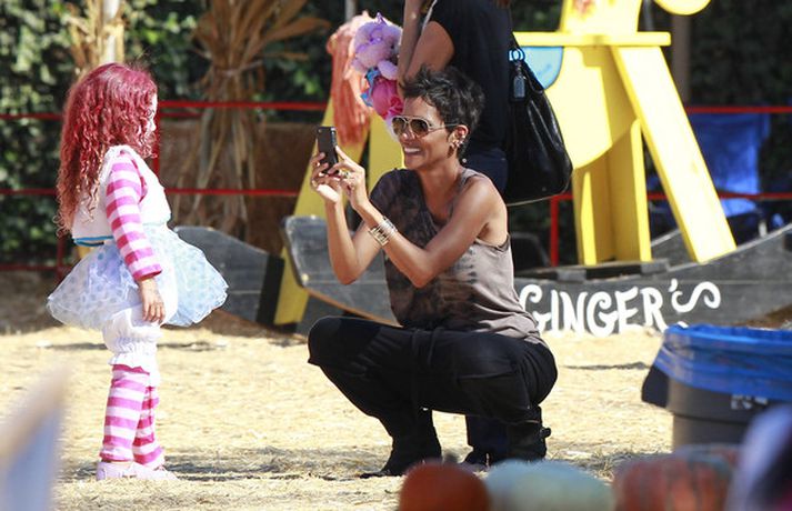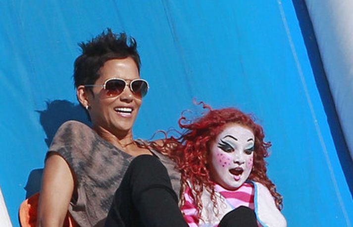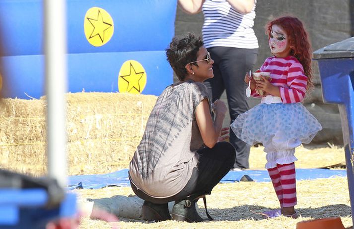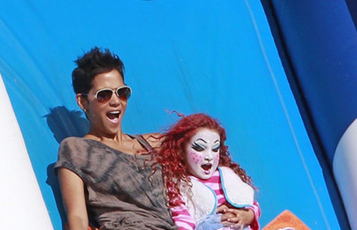 Leikkonan og ofurkroppurinn Halle Berry skemmti sér konunglega með dóttur sinni Nahla á hrekkjavökunni á dögunum eins og sjá má á meðfylgjandi myndum. Fóru þær mæðgur margar ferðir í rennibrautir saman og hlógu dátt. Einnig má sjá Berry taka margar myndir af dóttur sinni sem var vel skreytt með andlitsmálningu í framan. Augljóslega stolt mamma, en ekki hvað!Stolt af stelpunni sinni!