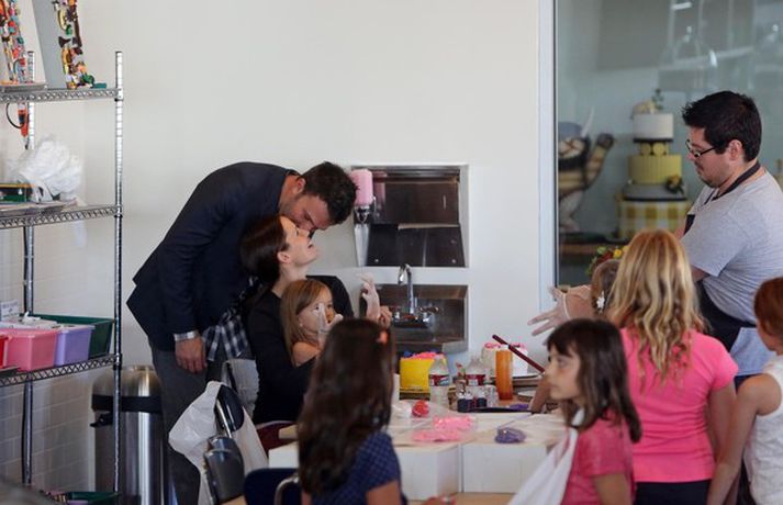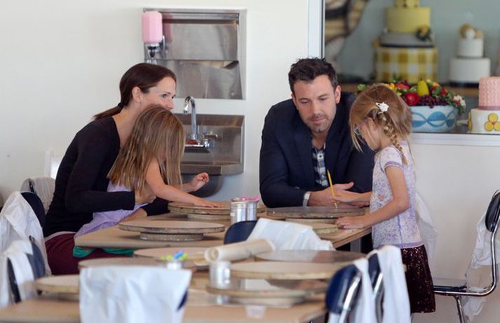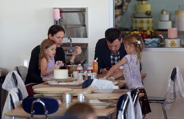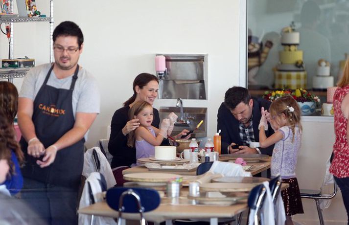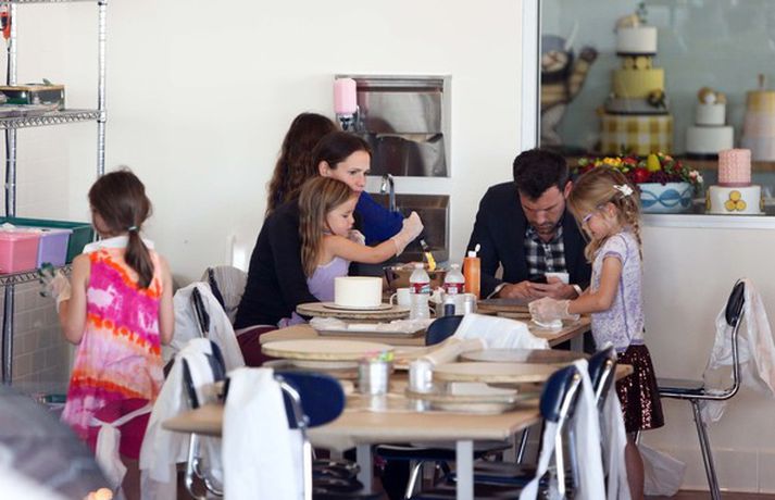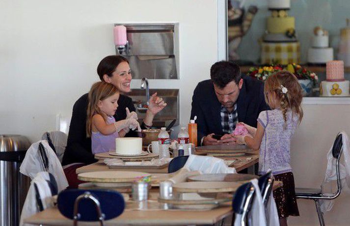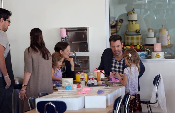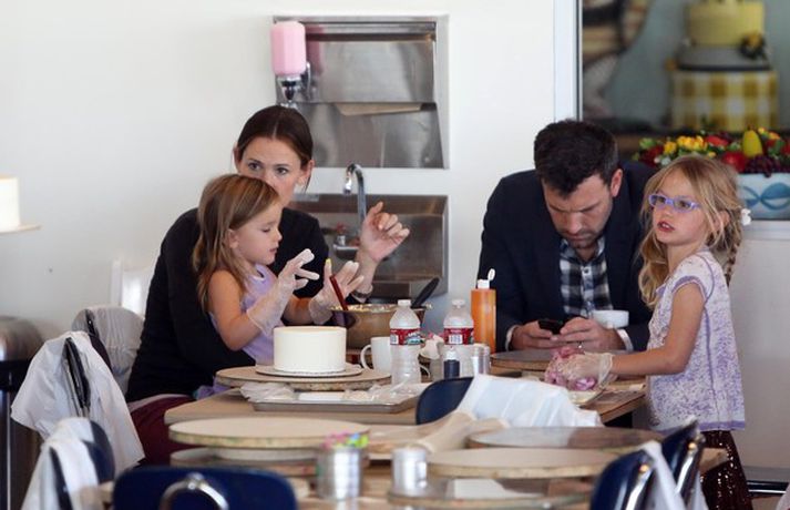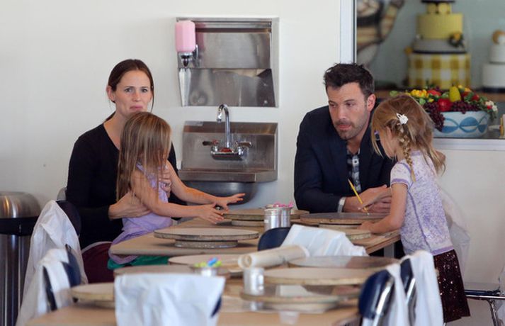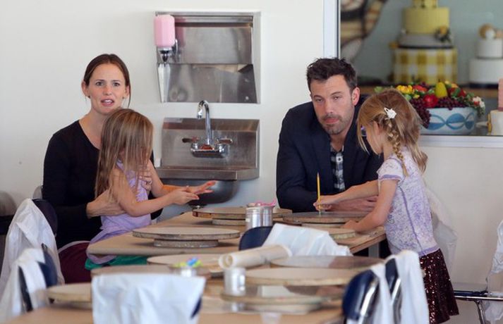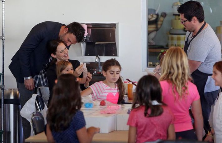 Ben Affleck og Jennifer Garner geisluðu af hamingju með börnum sínum á kaffihúsi um helgina. Hjónin fallegu keluðu hvort við annað og slóu á létta srengi. Greinilegt að þau eru enn yfir sig ástfangin þrátt fyrir óvenju langt Hollywood hjónaband. Sjá má hjónin í meðfylgjandi myndafni.Ástfangin!