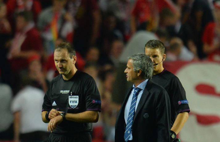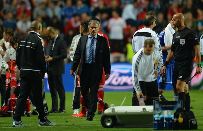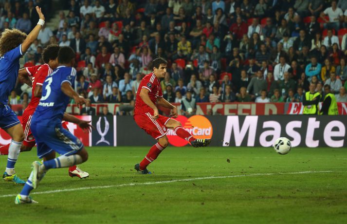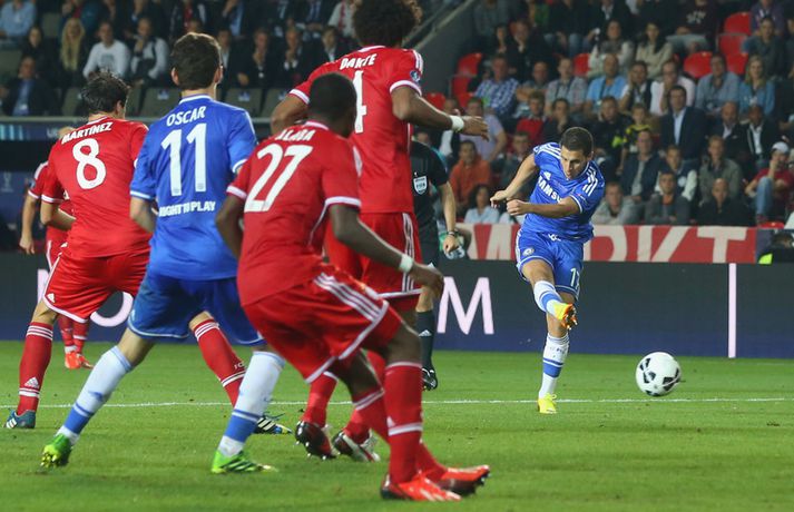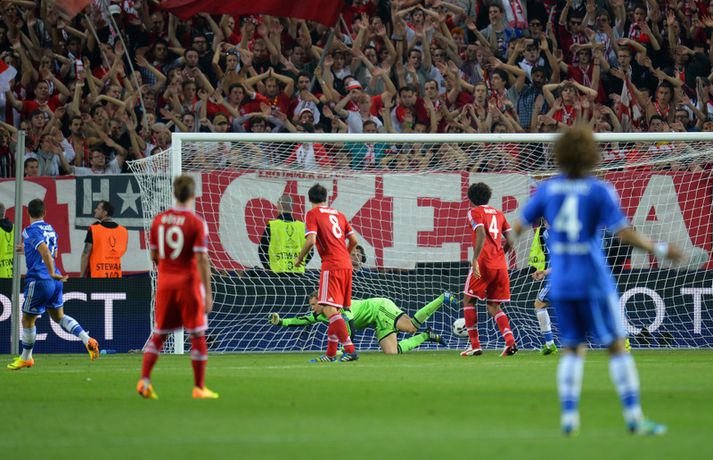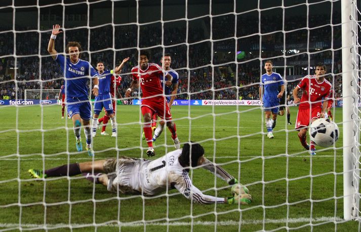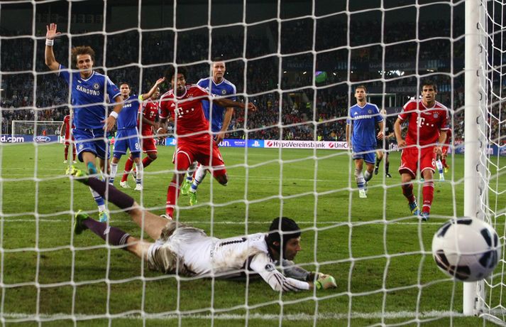 Bayern vann Ofurbikarinn í vítakeppni Óskar Ófeigur Jónsson skrifar 30. ágúst 2013 20:45 Mynd/NordicPhotos/Getty Bayern München er meistari meistaranna í Evrópu eftir 5-4 sigur á Chelsea í vítakeppni í leiknum um Ofurbikar Evrópu í Prag í kvöld en þetta er árlegur leikur á milli Evrópumeistaraliðanna frá síðustu leikíð. Þyski landsliðsmarkvörðurinn Manuel Neuer tryggði Bayern München titilinn þegar hann varði vítaspyrnu Romelu Lukaku en liðin voru þá búin að nýta níu fyrstu vítaspyrnur sínar í vítakeppninni. Chelsea lék manni færri alla framlenginguna en var aðeins nokkrum sekúndum frá því að tryggja sér titilinn í framlengingunni en Javi Martínez jafnaði metin í 2-2 með síðustu spyrnu leiksins. Chelsea komst tvisvar yfir í leiknum því Fernando Torres skoraði í upphafi leiks og Eden Hazard í upphafi framlengingarinnar. Franck Ribéry jafnaði í 1-1 í byrjun seinni hálfleiks. Þetta er í fyrsta sinn sem Bayern München vinnur Ofurbikar Evrópu en liðið var þrisvar sinnum búið að tapa þessum leik (1975, 1976, 2001). Jose Mourinho, knattspyrnustjóri Chelsea, var hársbreidd frá því að vinna fyrsta titilinn síðan að hann snéri aftur á Brúna en hann hefur aldrei unnið Ofurbikarinn á ferlinum. Chelsea fékk draumabyrjun í leiknum þegar Fernando Torres skoraði glæsilegt mark á 8. mínútu eftir frábæra skyndisókn. Eden Hazard sprengdi upp vörn Bayern og fann André Schürrle sem gaf fyrir á Torres. Spænski framherjinn afgreiddi boltann viðstöðulaust upp í bláhornið. Bayern tók ekki langan tíma að jafna metin í seinni hálfleik en Franck Ribéry skoraði þá með langskoti á 47. mínútu eftir samspil við Toni Kroos. Chelsea hafði varla komið við boltann í seinni hálfleiknum þegar Bayern München var búið að skora. Ramires fékk síðan sitt annað gula spjald fyrir brot á Mario Götze á 85. mínútu og Chelsea-liðið var því orðið manni færra. Það voru ekki skoruð fleiri mörk í venjulegum leiktíma og því þurfti að framlengja leikinn. Eden Hazard Kom Chelsea aftur yfir strax á þriðju mínútu í framlengingunni eftir einstaklingsframtak á vinstri vængnum. Hann lék inn að markinu og afgreiddi boltann í nærhornið án þess að Manuel Neuer kæmi vörnum við. Petr Cech varði nokkrum sinnum frábærlega í framlengingunni, þar á meðal tvisvar með skömmu millibili og Chelsea-liðið virtist ætla að lifa af mikla pressu Bayern-liðsins. Javi Martínez náði hinsvegar að jafna metin með síðustu spyrnu leiksins og tryggja Bayern vítakeppni. Martínez var á réttum stað þegar boltinn datt fyrir fætur hans eftir aukaspyrnu.Bayern München-Chelsea - vítakeppnin : 1-0 David Alaba, Bayern - mark 1-1 David Luiz, Chelsea - mark 2-1 Toni Kroos, Bayern - mark 2-2 Oscar, Chelsea - mark 3-2 Philipp Lahm, Bayern - mark 3-3 Frank Lampard, Chelsea - mark 4-3 Franck Ribéry, Bayern - mark 4-4 Ashley Cole, Chelsea - mark 5-4 Xherdan Shaqiri, Bayern - mark Romelu Lukaku, Chelsea - varið (Manuel Neuer) Enski boltinn Evrópudeild UEFA Meistaradeild Evrópu Þýski boltinn Mest lesið Vonast til að komast í Kórinn: „Menn hafa aldrei séð annað eins“ Fótbolti Landsleiknum aflýst og framhaldið óljóst Fótbolti Fær þrjár milljónir á dag næstu sex árin fyrir að gera ekkert Sport Stöðufundur í Laugardal klukkan 10:30 Fótbolti Enska úrvalsdeildin í jólaköttinn Enski boltinn Elsta konan til klára Járnkarlinn Sport Markvörður Inter banaði háöldruðum manni í hjólastól Sport Landsliðskonur aðstoðuðu ökumenn í vanda Fótbolti Birnir frá Akureyri í Garðabæ Íslenski boltinn Segir að Slot verði að taka tvo leikmenn út úr Liverpool-liðinu Enski boltinn Fleiri fréttir Leikið á Þróttaravelli á miðvikudag Vinícius Júnior íhugar að yfirgefa Real Madríd Kaupir sér tveggja milljarða króna hús Alexander Máni með fimm mörk í tveimur leikjum og Ísland áfram Birnir frá Akureyri í Garðabæ Klobbaði íslensku strákana og fór á flug á netmiðlum Hættir með Fram Landsliðskonur aðstoðuðu ökumenn í vanda Landsleiknum aflýst og framhaldið óljóst Segir að Slot verði að taka tvo leikmenn út úr Liverpool-liðinu Vonast til að komast í Kórinn: „Menn hafa aldrei séð annað eins“ „Alltaf gaman að fá nýjar raddir inn“ Gleðifréttir fyrir Argentínumenn: Messi vill spila á HM Stöðufundur í Laugardal klukkan 10:30 Enska úrvalsdeildin í jólaköttinn Nýi íþróttastjóri Kjartans stal mörgæs og endaði í fangelsi í Singapúr Tyrkneska sambandið segir dómara hafa veðjað á þúsundir leikja Brendan Rodgers sagði starfinu sínu lausu eftir ásakanir Segir sitt fyrrum lið í krísu Fylltu í eyðurnar: Vanmetnasti leikmaður deildarinnar? Fyrirliði Real Madríd þarf að fara í aðgerð á hné Einkaviðtal við Carrick: „Hálfgerð tískubylgja sem einkennir fótboltann í dag“ Markaóður Stefán Ingi eftirsóttur Öllu búin skildi snjóspáin raungerast „Eitthvað sem við erum óvanar eftir Þjóðadeildina“ Heimir kynntur til leiks í Árbænum Danir heiðra Michael Laudrup De Bruyne verður lengi frá Túfa rekinn frá Val Fyrrum markmannsþjálfari Liverpool látinn Sjá meira