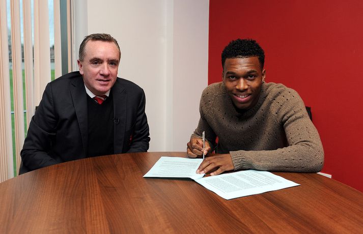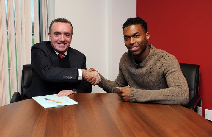 Daniel Sturridge orðinn leikmaður Liverpool: Ánægður og auðmjúkur Óskar Ófeigur Jónsson skrifar 2. janúar 2013 15:47 Daniel Sturridge með Liverpool-búninginn í dag. Mynd/Nordic Photos/Getty Liverpool gekk í dag frá kaupunum á enska landsliðsframherjanum Daniel Sturridge sem liðið fær frá Chelsea. Þessi kaup hafa legið lengi í loftinu og koma engum á óvart sem fylgst hefur með enskum fjölmiðlum upp á síðkastið. „Ég er ánægður og um leið auðmjúkur að vera kominn hingað. Brendan Rodgers sér mig spila hér í langan tíma og ég lít eins á. Ég ætla ekki að vera hér í nokkur ár og fara síðan eitthvert annað," sagði Daniel Sturridge við BBC. „Þetta er risafélag og að mínu mati eitt það stærsta í heimi. Það er frábært að spila hér með heimsklassa leikmönnum og fyrir þessa mögnuðu stuðningsmenn," sagði Sturridge. Daniel Sturridge er 23 ára gamall og kom til Chelsea frá Manchester City. Hann var lánaður til Bolton 2011 og skoraði þá 8 mörk í 12 leikjum. Sturridge skoraði 13 mörk í 63 deildarleikjum með Chelsea en var aðeins búinn að skora 1 mark í 7 leikjum á þessu tímabili þar sem hann var aðeins einu sinni í byrjunarliðinu. Sturridge verður væntanlega á Anfield í kvöld sem áhorfandi þegar Liverpool tekur á móti Sunderland en gæti spilað sinn fyrsta leik um helgina þegar liðið spilar við Mansfield Town í enska bikarnum. Enski boltinn Mest lesið Joshua í bílslysi þar sem tveir létust Sport Þetta er vitað um banaslysið sem Anthony Joshua slapp lifandi úr Sport Þreytt á umræðu um líkamann sinn: „Á ekki að tjá sig um það“ Sport Hneysklaður á ósönnum orðrómum Fótbolti Ekkja Jota þakklát: „Hefur meiri þýðingu en orð geta lýst“ Enski boltinn Hættir ekki fyrr en hann skorar þúsund mörk Fótbolti „Þegar þú spilar við Gary Anderson er alltaf pláss fyrir flugeldasýningu“ Sport Mennirnir sem létust voru þjálfarar og nánir vinir Anthony Joshua Sport Segja að Wirtz græði á fjarveru Salah: „Sé hann fljúga í gang“ Enski boltinn Strákarnir komnir í úrslit á Sparkassen Handbolti Fleiri fréttir Vildi ekki láta undan pressu frá fjölmiðlamönnum Man Utd samdi við fyrrum liðsfélaga Glódísar Perlu hjá Bayern Gefur í skyn að Arsenal opni veskið í janúar „Einn mesti hugsuðurinn í boltanum“ Semenyo vill að allt verði klárt fyrir nýársdag „Knattspyrnustjórar eru ekki töframenn“ Segja að Wirtz græði á fjarveru Salah: „Sé hann fljúga í gang“ Skynjar stress hjá Arsenal Sjáðu frábært samspil Leeds og Gray tryggja Spurs sigurinn Ekkja Jota þakklát: „Hefur meiri þýðingu en orð geta lýst“ Jöfnuðu 128 ára gamalt met Gray hetja Tottenham Calvert-Lewin skoraði í sjötta leiknum í röð Andy Carroll mætir fyrir dóm eftir að hafa verið handtekinn Villa kvartar til Chelsea vegna flösku sem flaug á bekkinn Sjáðu magnaða vörslu Raya: „Þetta var stórkostlegt“ Sjáðu fyrsta mark Wirtz, laglega sjálfsmarkið og Watkins stúta Chelsea Liverpool-skotmarkið ekki á förum í janúar Aldrei spilað þarna en sagði strax já „Viss um að ég myndi skora einn daginn“ Watkins hélt ótrúlegri sigurgöngu Villa áfram Schade og Jiménez sendu Brentford og Fulham í efri hlutann Arsenal aftur á toppinn Fyrsta mark Wirtz í þriðja sigrinum í röð Cherki aðalmaðurinn í sigri City Úlfarnir heiðruðu minningu Jota Andri Lucas frá í mánuð Sjáðu dönsku þrumuna sem færði United-mönnum öll þrjú stigin Segir að Arsenal stefni á sögulega fernu á þessu tímabili Amorim endaði viðtalið á gamansömum nótum Sjá meira