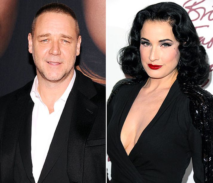 Mikið hefur verið slúðrað um það síðustu daga að Íslandsvinurinn Russell Crowe sé byrjaður með hinni þokkafullu Ditu Von Teese. Russell segir það hins vegar ekki vera satt. "Dita Von Teese er hugrökk, gáfuð, ljúf og glæsileg. Hún er vinkona mín. Hver myndi ekki vilja vinkonu eins og hana? Við erum vinir, ekki elskhugar," skrifar Russell á Twitter-síðu sína til að bæla niður þennan orðróm.Dita er vissulega þokkafull.Sagan segir að Russell og Dita hafi eytt miklum tíma saman í desember og skellt sér meðal annars í nudd saman.Russell og Danielle á góðri stundu.Russell skildi við eiginkonu sína til níu ára, Danielle Spencer, í október. Þau eiga saman tvo syni, Charles, níu ára, og Tennyson, sex ára, og hefur Russell gefið það í skyn á Twitter að þau Danielle séu að reyna að kveikja ástarlogann á ný. Þú gætir unnið - vertu með okkur á Facebook.
