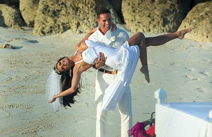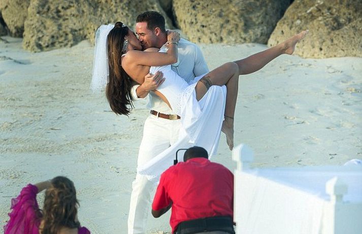 Glamúrmódelið Katie Price giftist stripparanum Kieran Hayler á Bahama-eyjum fyrir stuttu. Katie vildi halda brúðkaupinu fyrir sig en auðvitað náðust myndir af því. Myndirnar eru afar fagrar og virðast turtildúfurnar vera yfir sig ástfangnar þó þau hafi bara deitað í mánuð fyrir brúðkaupið.Hvítklædd.Brúðkaupskjóll Katie er líka afar sérstakur og sumarlegur.Sæt á ströndinni.Katie, líka þekkt sem Jordan, sýnir sínar bestu hliðar.Þú gætir unnið - vertu með okkur á Facebook.