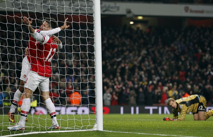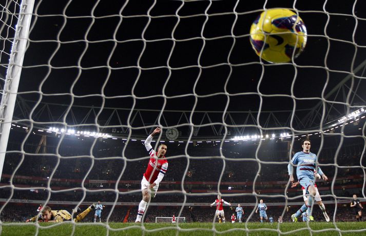 Fjögur Arsenal-mörk á tíu mínútum - svona fóru þeir að því Óskar Ófeigur Jónsson skrifar 24. janúar 2013 09:45 Arsenal vann frábæran 5-1 sigur á West Ham í ensku úrvalsdeildinni í gær og er nú aðeins fjórum stigum frá fjórða og síðasta sætinu sem gefur sæti í Meistaradeildinni á næstu leiktíð. Arsenal-liðið gerði út um leikinn með því að skora fjögur mörk á tíu mínútum í upphafi seinni hálfleiksins. Olivier Giroud skoraði tvö mörk og sín fyrstu síðan í nóvember en það var Þjóðverjinn Lukas Podolski sem var maður dagsins. Lukas Podolski byrjaði á því að jafna leikinn í fyrri hálfleik eftir að West Ham komst yfir og lagði síðan upp þrjú mörk fyrir félaga sína á fjórum mínútum í seinni hálfleiknum. Það er hægt að sjá þessa markaveislu Arsenal-manna inn á Sjónvarpsvefnum á Vísi með því að smella hér fyrir ofan. Enski boltinn Mest lesið Van de Ven bað Isak afsökunar: „Vildi ekki meiða hann“ Enski boltinn Hvers vegna heillast stórliðin svo af Semenyo? Enski boltinn Síðasti dansinn hjá Kelce? Sport Var frústreraður vegna landsliðsins Fótbolti Stefndi á ÓL en fannst látinn á hótelherbergi Sport Heyrði hvorki frá Blikum né Víkingum Íslenski boltinn Ruglaðar lokamínútur í Afríkukeppninni Fótbolti Þessi tíu eru tilnefnd sem Íþróttamaður ársins 2025: 23 ára aldursmunur Sport Viðurkenna að VAR hafi bilað Fótbolti Jólagjöf í Keflavík: Remy Martin snýr aftur Körfubolti Fleiri fréttir Van de Ven bað Isak afsökunar: „Vildi ekki meiða hann“ Hvers vegna heillast stórliðin svo af Semenyo? Stewart, Snoop og Modric í eina sæng Vill ekki segja hversu lengi Bruno er frá Spyr hvort Guardiola stígi á vigtina Arsenal í undanúrslit eftir vító Man. Utd reyndi stíft en Semenyo kaus City „Tölfræðilega séð eiga þeir ekkert að vera í þessari stöðu“ Chelsea setur sig í samband við Semenyo Jiménez jafnaði bestu vítaskyttu sögunnar Slot mun sakna Isak í tvo mánuði eftir „glórulausa tæklingu“ Sjáðu „auma“ vítið sem skilaði Fulham sigri Fulham skildi Forest eftir við fallsvæðið Áfallið staðreynd og Isak búinn í aðgerð Fagnaði titli Liverpool sem óður maður um alla borg „Allir virðast elska hann“ „Þetta mun ekki buga okkur“ Guardiola mun vigta leikmenn Man City eftir jólin „Ef þið væruð Antoine Semenyo, hvert mynduð þið fara?“ Sjáðu mörkin: Rogers sá um Manchester United Óttast að Isak hafi fótbrotnað Tvenna frá Rogers tryggði Villa sigur gegn Manchester United Fimmta sinn sem Arsenal er á toppnum um jólin: Unnu ekki titilinn í fyrstu fjögur skiptin „Viljum við að okkar verði minnst fyrir að vera skræfur?“ „Ef dómarinn hefði sinnt sínu starfi almennilega hefði Romero ekki fengið spjald“ Haaland gaf barnabarni Hareide gjöf Sjáðu mörkin úr enska: Sviptingar, sænskt þema og svakalegar tæklingar Calvert-Lewin hættir ekki að skora Gyökeres skaut Arsenal aftur á toppinn Slot fámáll um stöðuna á Isak Sjá meira
