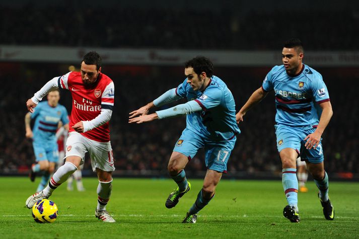 Arsenal lenti undir en vann stórsigur 23. janúar 2013 15:02 Nordic Photos / Getty Images Leikmenn Arsenal fóru á kostum í 5-1 sigri liðsins á West Ham í ensku úrvalsdeildinni í kvöld. Olivier Giroud skoraði tvö mörk fyrir þá rauðklæddu. Jack Collison kom reyndar West Ham yfir á átjándu mínútu með góðu skoti eftir að Giroud hafði skallað boltann beint fyrir fætur hans. Lukas Podolski jafnaði metin stuttu síðar með glæsilegu skoti og tók þá Arsenal öll völd á vellinum. Giroud skoraði fyrra markið sitt snemma í síðari hálfleik og Arsenal skoraði svo þrjú mörk á fjögurra mínútna kafla stuttu síðar. Fyrst Santi Cazorla, þá Theo Walcott áður en Giroud skoraði öðru sinni. Meiðsli varamannsins Dan Potts hjá West Ham varpaði hins vegar skugga á leikinn en hann var borinn af velli seint í leiknum. Enn er óljóst hversu alvarleg meiðslin eru en leikurinn tafðist um tólf mínútur af þeim sökum. Enski boltinn Mest lesið Viðurkenna að VAR hafi bilað Fótbolti Síðasti dansinn hjá Kelce? Sport Jólagjöf í Keflavík: Remy Martin snýr aftur Körfubolti Stefndi á ÓL en fannst látinn á hótelherbergi Sport Arnar Daði rekinn frá Stjörnunni en áfram þjálfari kvennaliðsins Handbolti Þessi tíu eru tilnefnd sem Íþróttamaður ársins 2025: 23 ára aldursmunur Sport Ruglaðar lokamínútur í Afríkukeppninni Fótbolti Úr Bestu heim í Hauka Íslenski boltinn Heyrði hvorki frá Blikum né Víkingum Íslenski boltinn Koepka fyrsta stjarnan sem riftir samningi við LIV Golf Fleiri fréttir Van de Ven bað Isak afsökunar: „Vildi ekki meiða hann“ Hvers vegna heillast stórliðin svo af Semenyo? Stewart, Snoop og Modric í eina sæng Vill ekki segja hversu lengi Bruno er frá Spyr hvort Guardiola stígi á vigtina Arsenal í undanúrslit eftir vító Man. Utd reyndi stíft en Semenyo kaus City „Tölfræðilega séð eiga þeir ekkert að vera í þessari stöðu“ Chelsea setur sig í samband við Semenyo Jiménez jafnaði bestu vítaskyttu sögunnar Slot mun sakna Isak í tvo mánuði eftir „glórulausa tæklingu“ Sjáðu „auma“ vítið sem skilaði Fulham sigri Fulham skildi Forest eftir við fallsvæðið Áfallið staðreynd og Isak búinn í aðgerð Fagnaði titli Liverpool sem óður maður um alla borg „Allir virðast elska hann“ „Þetta mun ekki buga okkur“ Guardiola mun vigta leikmenn Man City eftir jólin „Ef þið væruð Antoine Semenyo, hvert mynduð þið fara?“ Sjáðu mörkin: Rogers sá um Manchester United Óttast að Isak hafi fótbrotnað Tvenna frá Rogers tryggði Villa sigur gegn Manchester United Fimmta sinn sem Arsenal er á toppnum um jólin: Unnu ekki titilinn í fyrstu fjögur skiptin „Viljum við að okkar verði minnst fyrir að vera skræfur?“ „Ef dómarinn hefði sinnt sínu starfi almennilega hefði Romero ekki fengið spjald“ Haaland gaf barnabarni Hareide gjöf Sjáðu mörkin úr enska: Sviptingar, sænskt þema og svakalegar tæklingar Calvert-Lewin hættir ekki að skora Gyökeres skaut Arsenal aftur á toppinn Slot fámáll um stöðuna á Isak Sjá meira