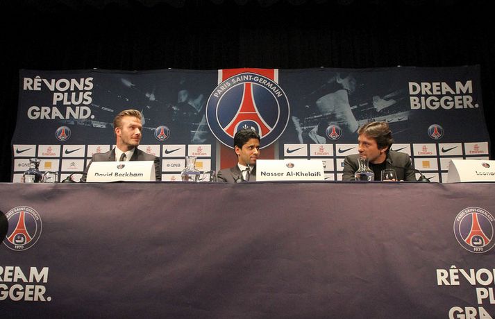 Barnaspítali í París fær öll laun Beckham hjá PSG Óskar Ófeigur Jónsson skrifar 31. janúar 2013 17:07 David Beckham á fundinum í dag. Mynd/Nordic Photos/Getty David Beckham er nú á blaðamannafundi í París þar sem hann var tilkynntur sem nýr leikmaður Paris Saint-Germain. Beckham gerir fimm mánaða samning við Parísarliðið og segist ætla að hjálpa liðinu vaxa enn frekar. Beckham er ekki kominn til Paris Saint-Germain peninganna vegna sem sést kannski best á því að hann hefur ákveðið að ánefna barnaspítala í París öll launin sín hjá PSG. „Ein af ástæðunum fyrir því að ég kem til París er að við höfðum tækifæri til að gera eitthvað einstakt. Launin mín munu fara til barnaspítala í París og ég er mjög spenntur og stoltur yfir því að geta gert það. Ég er ekki viss um að svona hafi verið gert áður," sagði Beckham. Beckham gaf ekki upp nákvæma upphæð eða hvaða barnaspítali fái launin hans en viðurkenndi þó að þetta væri ekki lítil upphæð. Beckham talaði líka um það á fundinum að hann verði nú að rifja upp skólafrönskuna sína og að bæði eiginkonan hans og börnin fjögur muni búa áfram í London. Fótbolti Mest lesið Ekkert bit í snáknum: „Hörmulegur og ætti að hætta“ Sport United horfir til Þýskalands eftir höfnun Semenyo Enski boltinn „Þú birtir falsfrétt um mig, þú ert í banni“ Fótbolti Kynntu Sigurð á slaginu sex á aðfangadag Íslenski boltinn Zidane sá soninn spila á Afríkumótinu Fótbolti Goðsögn fallin frá Enski boltinn „Ég elska peninga“ Sport Haaland stóðst vigtun eftir jólin Enski boltinn Þessi tíu eru tilnefnd sem Íþróttamaður ársins 2025: 23 ára aldursmunur Sport Féll úr skíðalyftu og lést Fótbolti Fleiri fréttir United horfir til Þýskalands eftir höfnun Semenyo „Þú birtir falsfrétt um mig, þú ert í banni“ Haaland stóðst vigtun eftir jólin Hápunktarnir hingað til í enska boltanum Goðsögn fallin frá Zidane sá soninn spila á Afríkumótinu Hótað brottrekstri ef hann færi ekki á börurnar Kærður af knattspyrnusambandinu Bestu jólamörkin: Drogba, Scholes eða Giroud? Býst ekki við að spila aftur fyrir landsliðið Féll úr skíðalyftu og lést Kynntu Sigurð á slaginu sex á aðfangadag Van de Ven bað Isak afsökunar: „Vildi ekki meiða hann“ Var frústreraður vegna landsliðsins Hvers vegna heillast stórliðin svo af Semenyo? Stewart, Snoop og Modric í eina sæng Mahrez batt enda á bið Alsíringa Heyrði hvorki frá Blikum né Víkingum Ruglaðar lokamínútur í Afríkukeppninni Vill ekki segja hversu lengi Bruno er frá Spyr hvort Guardiola stígi á vigtina Viðurkenna að VAR hafi bilað Úr Bestu heim í Hauka „Þetta er stærsti klúbbur Íslands“ Kaupmannahafnarbúi afgreiddi Úganda Arsenal í undanúrslit eftir vító Man. Utd reyndi stíft en Semenyo kaus City Iwobi og Lookman áberandi í sigri Nígeríu „Tölfræðilega séð eiga þeir ekkert að vera í þessari stöðu“ Amanda hætt hjá Twente Sjá meira