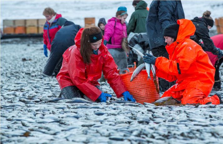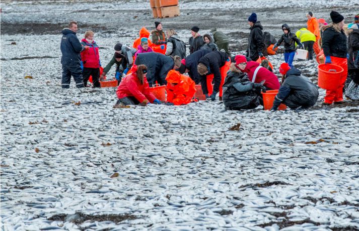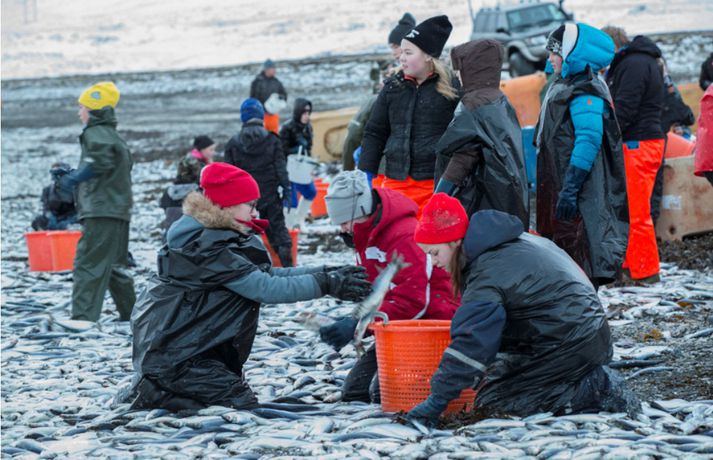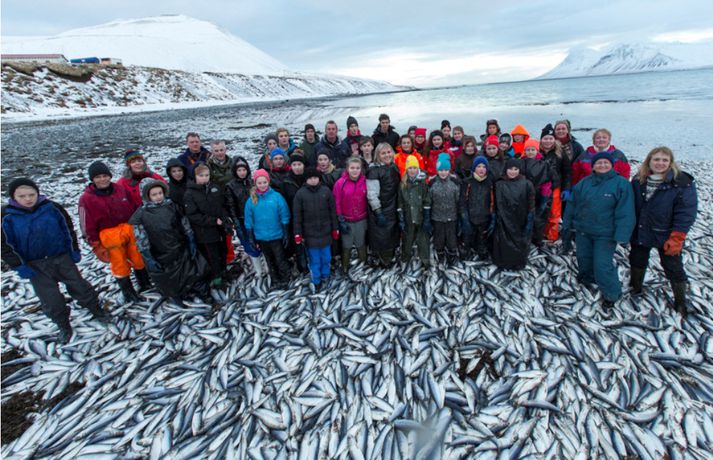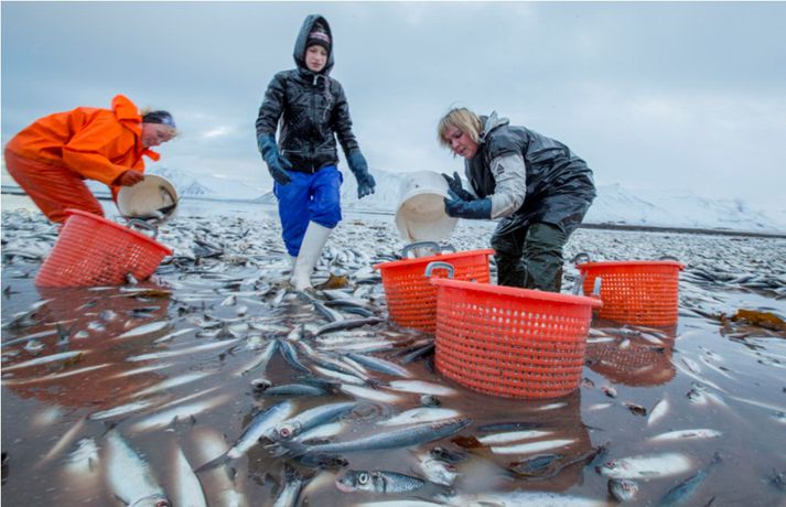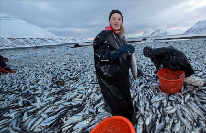 Síldarævintýrið í máli og myndum 6. febrúar 2013 09:45 Ekki færri en fjörutíu krakkar úr grunnskólanum á Grundarfirði, í fylgd hóps fullorðinna, unnu að síldartínslu í Kolgrafafirði í gærmorgun. Allt að 25 tonn af síld voru komin í kör um hádegi og þeim ekið í átt til Sandgerðis þar sem fyrirtækið Skinnfiskur mun nýta síldina sem minkafóður. Vilhelm Gunnarsson ljósmyndari skellti sér vestur í gær og fylgdist með því sem fram fór.Hér má sjá myndskeið frá Kolgrafafirði og að neðan eru ljósmyndir. Mest lesið Krafa um fjöldabrottvísanir fólks nemur land á Íslandi Innlent Laufey Rún hætt störfum hjá Miðflokknum Innlent Svandís stígur til hliðar Innlent Trump, Clinton, Gates og fleiri á nýjum Epstein-myndum Erlent Gengst ekki við falsfréttum en viðurkennir að tímasetningar séu misvísandi Innlent Fjöldi svæða á landinu sambandslaus með öllu Innlent Allt að helmingur barna heima vegna veikinda Innlent Sanna býður sig fram undir merkjum Vors til vinstri Innlent Bergþór með brjósklos og blæs á slúður Innlent Inflúensan á uppleið og seinni bylgjan handan við hornið Innlent Fleiri fréttir Vill að allt verði gert til að ná bróður hans úr sprungunni Einn fluttur á slysadeild vegna brunans Vill finna bróður sinn „Þessar fréttir ollu mér og fleirum vanlíðan“ Bergþór með brjósklos og blæs á slúður Virkjunarleyfi Hvammsvirkjunar endurnýjað Svandís stígur til hliðar Flugvél á leið til Egilsstaða snúið við yfir Hallormsstað Gengst ekki við falsfréttum en viðurkennir að tímasetningar séu misvísandi Sigmundur Davíð og Kemi Badenoch meðal gesta í boði Meloni Keyptu ekki skýringar um neyðarvörn í Mjóddinni Bakkaði á ofsahraða með lyfjakokteil í blóðinu Laufey Rún hætt störfum hjá Miðflokknum Sanna býður sig fram undir merkjum Vors til vinstri Styggur svanur í sundi handsamaður og skilað í næstu tjörn Viðreisn stundi hræðsluáróður í stað þess að ræða málin Inflúensan á uppleið og seinni bylgjan handan við hornið Flensan á flugi og Sundlaugarmenningunni fagnað í Vesturbæjarlauginni Játaði en áfrýjaði samt og krafðist sýknu Páll Winkel meðal umsækjenda um embætti ráðuneytisstjóra Vilja takmarka fjölda barna sem getin eru með sama sæði Fjöldi svæða á landinu sambandslaus með öllu Fjölskyldur fórnarlamba krefjast ábyrgðar Sádi-Arabíu Staðsetning Íslands „hernaðarlega mjög mikilvæg“ Fjögur ár fyrir smygl á rúmum fjórum kílóum af kókaíni 325 milljónir í næsta áfanga LED-ljósavæðingar í Reykjavík Krafa um fjöldabrottvísanir fólks nemur land á Íslandi Líkamsárásir, heimilisofbeldi og vopnaður ökumaður Gjaldtaka af bílum sé hærri en fjárframlög til vegagerðar Allt að helmingur barna heima vegna veikinda Sjá meira
