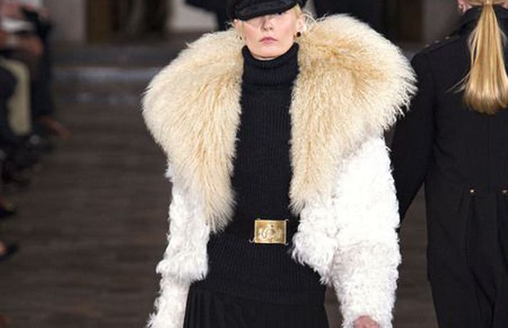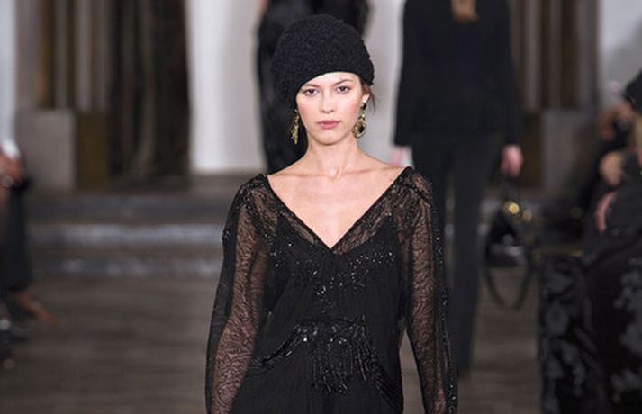 Svarti liturinn var einkennandi fyrir haust- og vetarlínu Ralph Lauren sem sýnd var á tískuvikunni í New York í gær. Línan var greinilega undir rússneskum áhrifum, en hann notaðist mikið við loðkraga og húfur. Sniðin og litirnir voru dökk og dramatísk, flauel, silki og leður. Allt small þetta saman hjá Ralph.