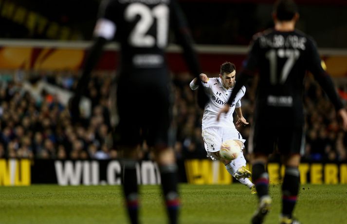 Villas-Boas: Ótrúlegar spyrnur hjá Bale Óskar Ófeigur Jónsson skrifar 15. febrúar 2013 09:15 Gareth Bale. Mynd/Nordic Photos/Getty Andre Villas-Boas, knattspyrnustjóri Tottenham, hrósaði Gareth Bale að sjálfsögðu mikið eftir 2-1 sigur Tottenham á Lyon í 32 liða úrslitum Evrópudeildarinnar í gær. Bale skoraði bæði mörk leiksins beint út aukaspyrnu þar á meðal sigurmarkið í uppbótartíma. „Þetta er ótrúlegt. Ekki bara hvernig hann er að spila inn á vellinum heldur einnig hæfileikar hans til þess að taka þessar aukaspyrnur," sagði Andre Villas-Boas. „Boltinn er að auka hraðann allan tímann og hann breytir mjög auðveldlega um stefnu. Við sáum reyndar þrenns konar snilld í kvöld því markið þeirra var einnig frábært," sagði Villas-Boas. „Það voru samt snilldartilþrifin hans Bale sem gerðu útslagið fyrir okkur í þessum leik," sagði Villas-Boas og hann játti því þegar hann var spurður hvort að hægt væri hægt að væri að setja hann í sama klassa og Cristiano Ronaldo. „Já hann er að gera mjög flotta hluti upp á sitt einsdæmi og hann er að skora mörg mörk fyrir sitt lið," sagði Villas-Boas. Gareth Bale hefur nú skoraði fjögur mörk í síðustu tveimur leikjum og þrjú þeirra hafa komið úr hinum mögnuðu aukaspyrnum hans. „Við höfum séð hann skorað þrjú svona mörk í síðustu tveimur leikjum og það er núna alltaf mikil eftirvænting þegar við fáum aukaspyrnu á hættulegum stað. Það getur allt gerst og miklar líkur á marki," sagði Villas-Boas. Enski boltinn Mest lesið Syrgja átján ára fimleikakonu Sport Írar ætli að fylgja eftir tillögu Heimis Fótbolti Gerir grín að klæðaburði liðsfélaga síns Körfubolti Segir að Arsenal stefni á sögulega fernu á þessu tímabili Enski boltinn Þjálfar 2. flokk samhliða því að spila fyrir KR Íslenski boltinn Samþykkja hvern Rússann á fætur öðrum inn á Ólympíuleikana Sport Sjáðu dönsku þrumuna sem færði United-mönnum öll þrjú stigin Enski boltinn Amorim endaði viðtalið á gamansömum nótum Enski boltinn Stjórnin leyst frá störfum eftir að tólf ára drengur drukknaði Sport Hafa áhyggjur af notkun gríma sem líkja eftir þjálfun í þunnu lofti Sport Fleiri fréttir Nottingham Forest - Manchester City | Mæta City-menn þungir til leiks? Andri Lucas frá í mánuð Sjáðu dönsku þrumuna sem færði United-mönnum öll þrjú stigin Segir að Arsenal stefni á sögulega fernu á þessu tímabili Amorim endaði viðtalið á gamansömum nótum „Við eigum heima í Evrópu“ Daninn skaut Man. United upp fyrir Liverpool Amorim segir strákinn í frystinum vera framtíðin hjá Man. United Martinez með fyrirliðabandið og báðir Fletcher-bræðurnir á bekknum Havertz gæti snúið aftur á næstu dögum Alfons og Willum sáu tvö rauð spjöld fara á loft Synir Diogo Jota leiða leikmenn út á Anfield Cunha vill skemmta og Howe treystir leikmönnum United horfir til Þýskalands eftir höfnun Semenyo Haaland stóðst vigtun eftir jólin Hápunktarnir hingað til í enska boltanum Goðsögn fallin frá Kærður af knattspyrnusambandinu Bestu jólamörkin: Drogba, Scholes eða Giroud? Van de Ven bað Isak afsökunar: „Vildi ekki meiða hann“ Hvers vegna heillast stórliðin svo af Semenyo? Stewart, Snoop og Modric í eina sæng Vill ekki segja hversu lengi Bruno er frá Spyr hvort Guardiola stígi á vigtina Arsenal í undanúrslit eftir vító Man. Utd reyndi stíft en Semenyo kaus City „Tölfræðilega séð eiga þeir ekkert að vera í þessari stöðu“ Chelsea setur sig í samband við Semenyo Jiménez jafnaði bestu vítaskyttu sögunnar Slot mun sakna Isak í tvo mánuði eftir „glórulausa tæklingu“ Sjá meira