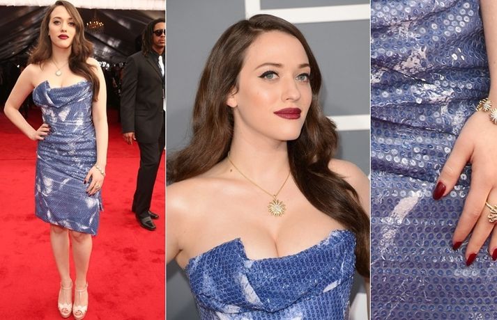 Broke Girls-stjarnan Kat Dennings var stórglæsileg í fallega bláum kjól frá Vivienne Westwood á Grammy-verðlaununum sem afhent voru síðustu helgi. Leiðinlegt fyrir Kat að leikkonan Kate Beckinsale var búin að klæðast eins kjól fyrir fimm mánuðum síðan. En hvor er flottari í þessum yndislega kjól?Kat.Kate.Þú gætir unnið - vertu með okkur á Facebook.