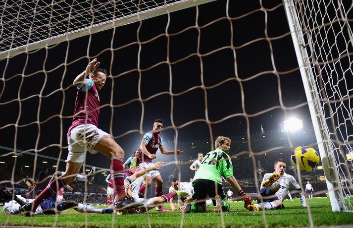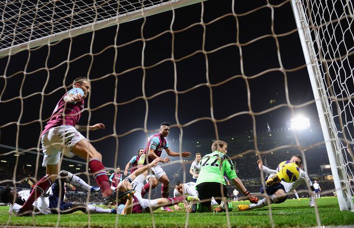 Mörkin mikilvægu hjá Gylfa og Bale Óskar Ófeigur Jónsson skrifar 25. febrúar 2013 22:48 Gylfi Þór Sigurðsson skoraði sitt fyrsta deildarmark fyrir Tottenham í kvöld þegar hann jafnaði metin í 2-2 í 3-2 sigri liðsins á West Ham á Upton Park. Tottenham komst upp í þriðja sætið með þessum sigri en sigurmark Gareth Bale var af betri gerðinni. Gylfi kom inn á sem varamaður á 55. mínútu og var nálægt því að skora skömmu síðar þegar Jussi Jääskeläinen varði skot hans í stöng. Markið hans Gylfa kom á 76. mínútu eftir þvögu í teignum en þetta var nú ekki fallegasta markið hans í ensku úrvalsdeildinni þótt að það hafi verið langþráð. Hér í myndbandinu fyrir ofan má sjá mörkin mikilvægu sem Gylfi og Gareth Bale skoruðu fyrir Tottenham í leiknum í kvöld en Gylfi var fyrir leikinn búinn að spila 22 deildarleiki fyrir Tottenham-liðið án þess að ná að skora. Enski boltinn Mest lesið Enginn blóðugur en einn brjálaður á HM í kvöld Sport Hefur aldrei séð svona ofbeldi: „Þetta var allt of mikið“ Sport Körfuboltakvöld: Tilþrif tímabilsins til þessa Körfubolti Stjarnan fór í dulargervi: Setti stuðningsmann United á óþekka listann Enski boltinn Garnacho skaut Chelsea áfram í undanúrslit Enski boltinn Milljarðs evra munur á liðunum: Börsungar lentu í brasi gegn þriðju deildar liði Fótbolti Viktor Gísli stóð vaktina er fullkomið gengi Börsunga hélt áfram Handbolti UFC meistari segir frá fjárkúgun og „fölskum ásökunum“ Sport Brasilíumenn byrja vel undir stjórn Menezes - myndband Fótbolti Brenndi á sér höndina áður en hann kýldi í borðið Sport Fleiri fréttir Stjarnan fór í dulargervi: Setti stuðningsmann United á óþekka listann Garnacho skaut Chelsea áfram í undanúrslit Vísa á bug fullyrðingum Bruno sem hafa valdið fjaðrafoki Hlaut 21 árs dóm fyrir að aka inn í skrúðgönguna í Liverpool Bjarni segir Newcastle stærra félag en Tottenham Moyes ældi alla leiðina til Eyja Bróðirinn sendir Amorim skilaboð: „Frelsið Kobbie Mainoo“ „Besta frammistaða United undir stjórn Amorim“ Segir að Salah muni sjá eftir því að fara í janúar Sjáðu mörkin úr ótrúlegu átta marka jafntefli á Old Trafford Skemmtilegt fyrir fólkið heima og United verðskuldaði sigur Jafnt í ótrúlegum átta marka leik á Old Trafford Vildi ekki skýra ummælin um verstu 48 klukkutímana frekar Maresca hafi tekið blaðsíðu úr bók Salah og gert sér óleik Guardiola gagnrýndi Foden þrátt fyrir markið „Finnst þér ekki eins og hann sé þjakaður af pressu yfir því hvað hann sé lélegur?“ Fyrirliði Newcastle eftir tapið fyrir Sunderland: „Þetta er svo vandræðalegt“ Sjáðu klaufalegt sjálfsmark Woltemade í grannaslagnum og öll hin úr enska Amorim verður ánægður ef Mainoo ræðir við hann um lán „Sé ekkert annað en að dýrasti leikmaður deildarinnar verði áfram á bekknum“ „Í dag er dagurinn sem þú fæddist, í dag er dagurinn sem þú munt deyja“ Henderson heiðraði minningu Jota eftir fyrsta markið sitt í fjögur ár Calvert-Lewin jafnaði fyrir Leeds í lokin „Gott fyrir svæðið, félagið og stuðningsmennina“ Sunderland vann nágrannaslaginn fyrir norðan Haaland með tvennu í öruggum útisigri City Sangaré og Hudson-Odoi hrelltu Tottenham Sjáðu sjálfsmörkin sem björguðu Arsenal og hetju Liverpool skora tvö Salah skráði sig á spjöld sögunnar í endurkomunni í dag „Stundum þarf maður heppni“ Sjá meira